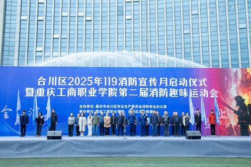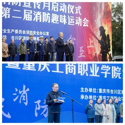 11月7日下午,合川区2025年“119”消防宣传月启动仪式与我校第二届消防趣味运动会在学校运动场隆重举行。学校党委副书记刘昌雄、区消防救援局党委书记范鑫及区相关行业部门领导出席活动现场。来自属地6高校的师生代表近千人共同参加本次盛会。