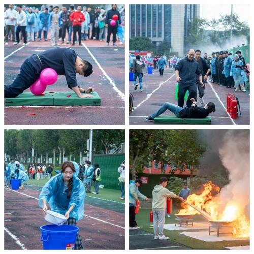 启动仪式结束后,我校第二届消防趣味运动会火热开场。本次运动会设置了灭火自救、盛水接力、穿越障碍救援、油盆灭火等多个比赛项目。来自全校的学生代表队、教职工代表队以及第三方服务人员代表队等数十支队伍同场竞技。赛场上,参赛队员们团结协作、奋勇争先,在轻松愉快的氛围中熟练掌握了消防技能,有效提升了在紧急情况下的应急处置和协同配合能力,现场加油声、欢呼声此起彼伏,气氛热烈。