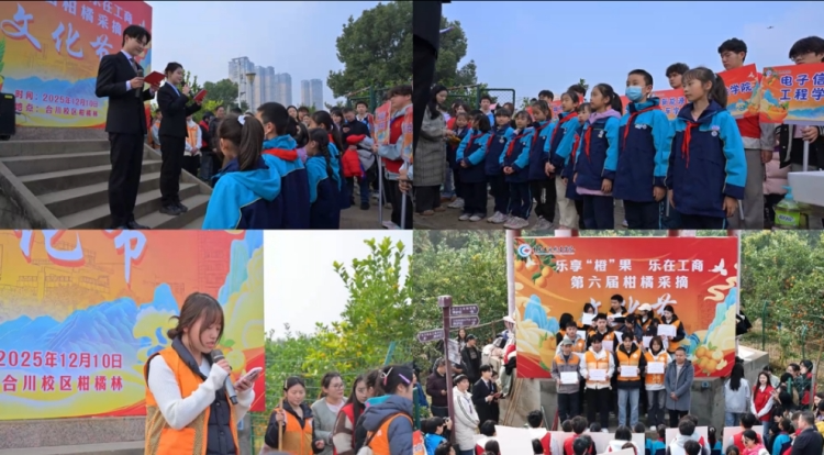 为扎实推进劳动教育走深走实,构建大中小学校协同育人新格局,12月10日,以“乐享‘橙’果 乐在工商”为主题的第六届柑橘采摘文化节暨秋期校园开放日在合川校区柑橘林举行。我校400余名师生代表、合川区新华小学60余名小朋友及老师共同参与本次活动。