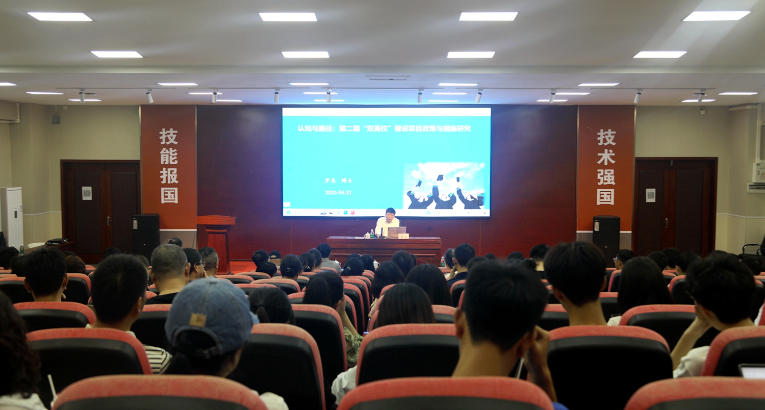 罗志教授首先从职业教育高质量发展新语境启题,深入剖析了现代职业教育功能定位从“谋业”到“人本”,改革重心从“教育”到“产教”,场域从“区域”到“全局”,发展路径从“分类”到“协同”,办学主体从“单一”到“多元”的转变;结合国家重大战略、双高文件、实际案例详细讲解了第二期“双高校”建设项目布局重点、遴选标准、工作原则、内容要义、措施路径;罗志教授还结合职业教育发展新趋势对我校新双高建设及“十五五”事业发展规划提出了“6个一”创想,即“一课题、一共同体、一牵手工程、一平台、一联盟、一基地”。