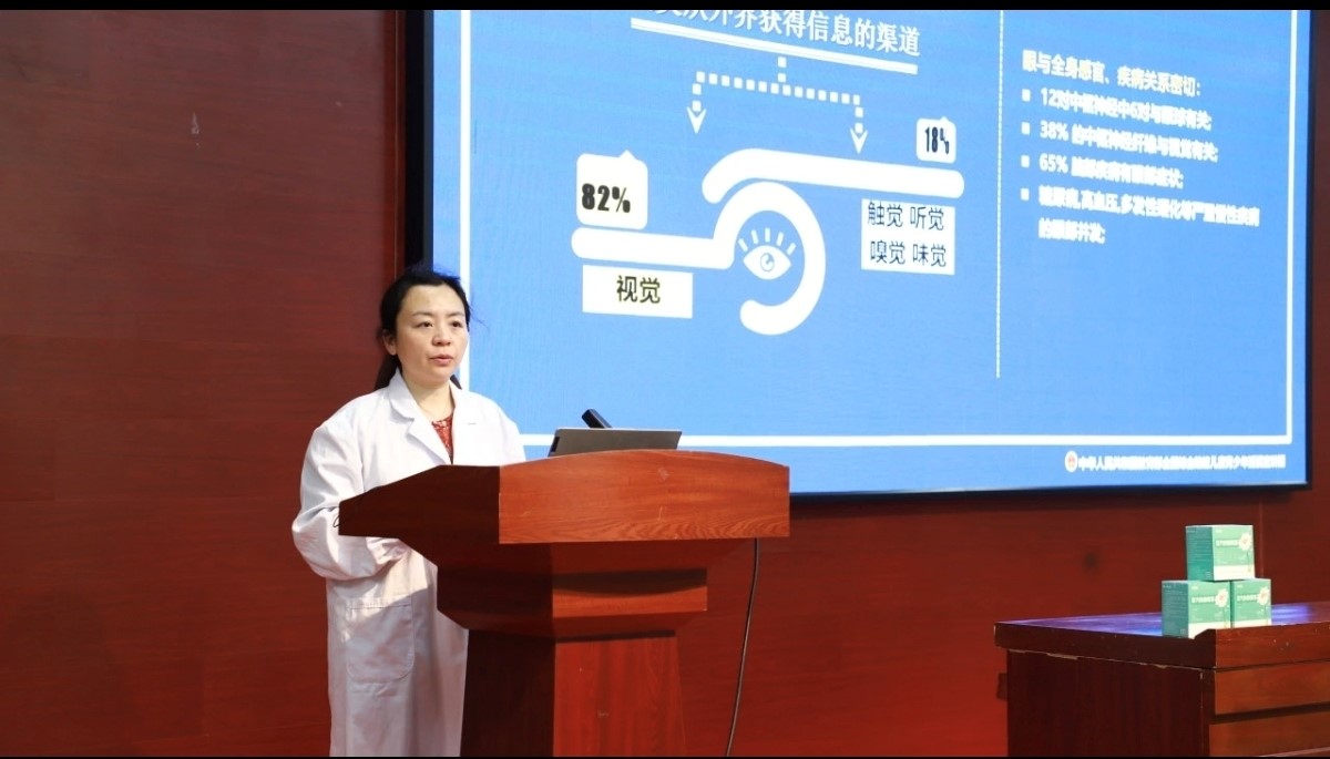 在学术报告厅,眼科副主任医师简嘉教授以《七彩青春 科学护眼》为题,结合大学生群体用眼特点,深入浅出地剖析了当代大学生常见眼健康问题,如干眼症、近视等,并给出了一系列科学护眼方案,现场师生纷纷表示受益匪浅。