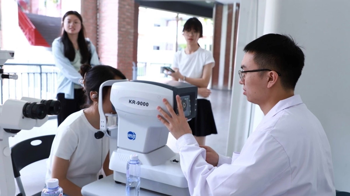 讲座后,重医附二院眼科专家团队针对大学生用眼特点,学生们开展了免费义诊服务。