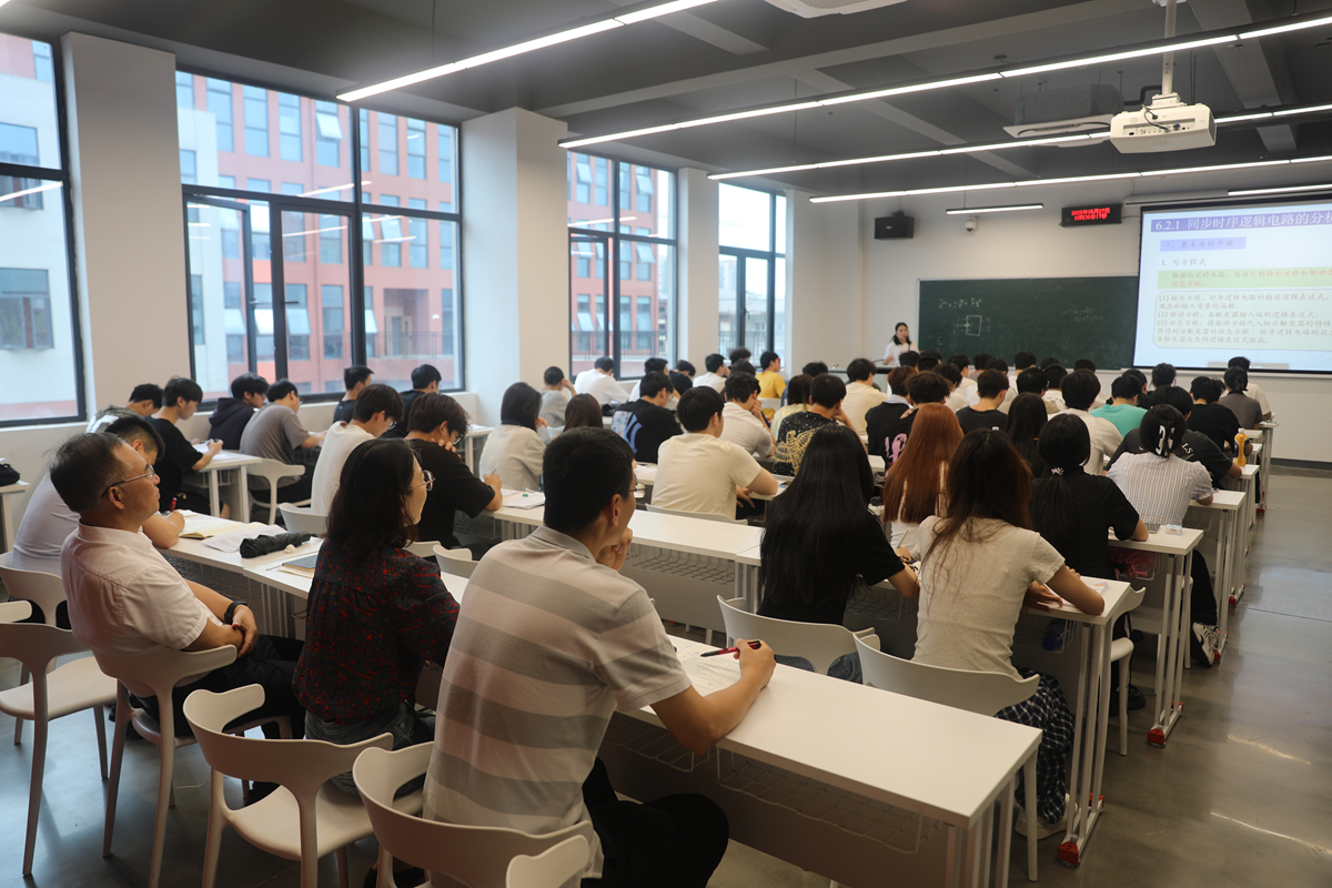本次集体听课采取了不打招呼的随堂听课方式,旨在全面、真实地了解教师的教学能力和水平。一行人在F316教室,听取了经济与管理学院赵言老师讲的“跨专业综合实训”课;接着,领导们来到H218教室听取了电气与电子工程学院周冬芹老师的“数字电子技术”课。