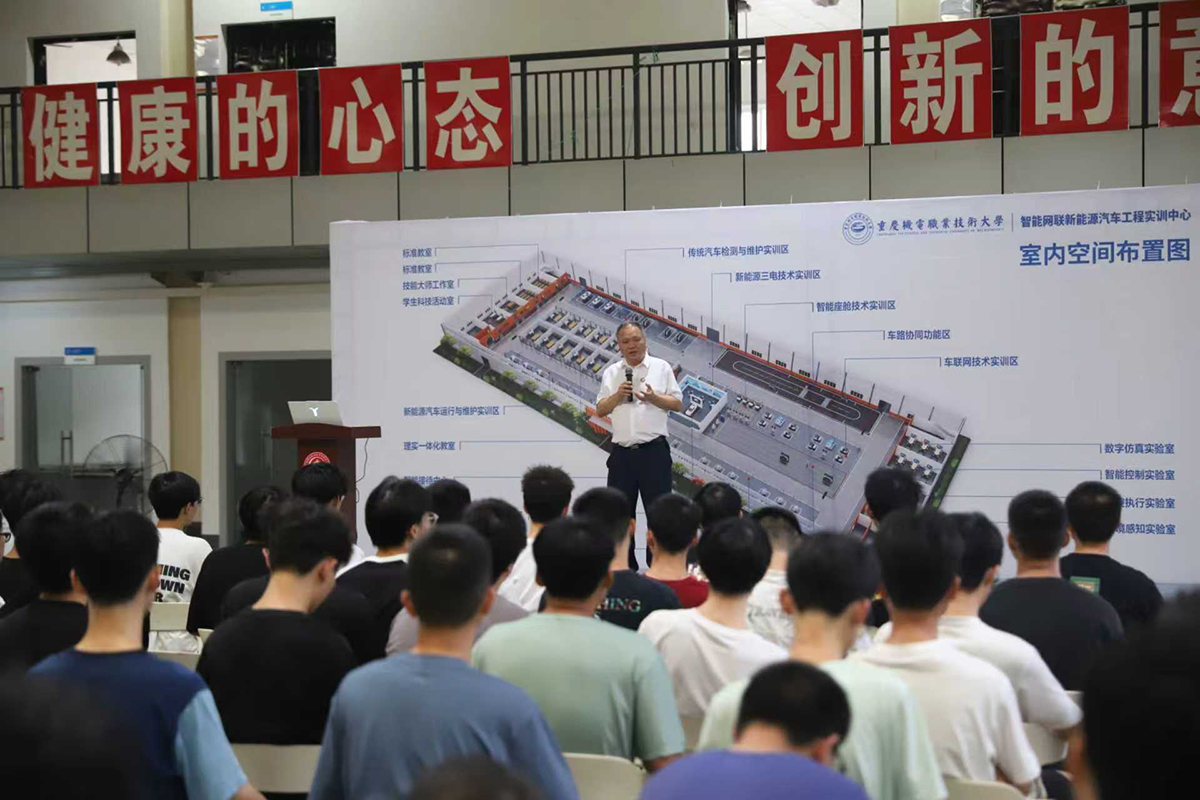 课堂上,石晓辉校长围绕汽车行业国际国内发展趋势、未来人才需求及同学们到校后的学习规划等展开深入讲授。他凭借清晰的行业视野与专业的洞察力,帮助新生建立专业认知、坚定学习信念,并鼓励大家夯实技能基础、提前规划成长路径。