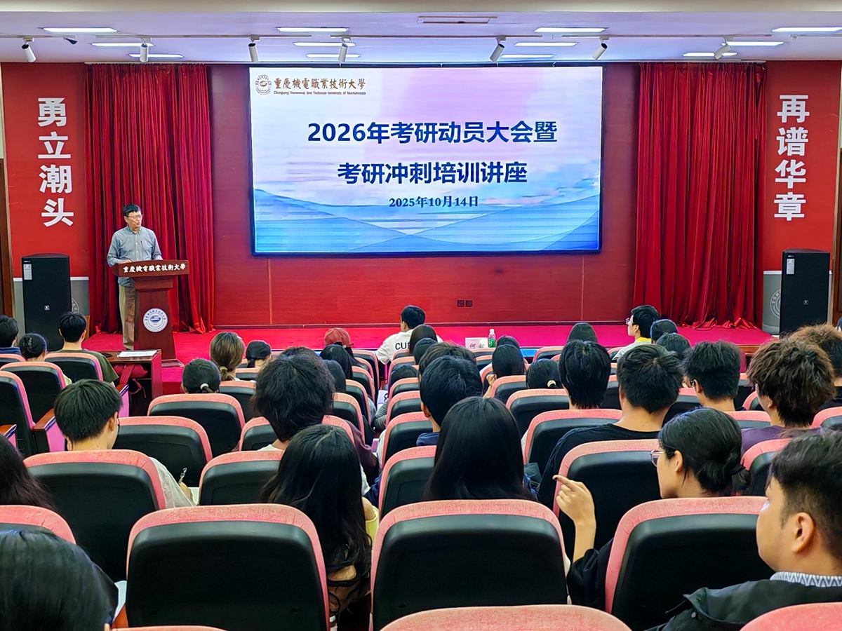 为助力我校考研学子明晰备考方向、破解备考难题、坚定考研信念, 10 月 14 日下午,我校于 F219 教室隆重举行2026年考研动员大会暨考研冲刺培训讲座。考研辅导名师王江、学生处相关工作人员及各学院考研学子参加大会,学校副校长何超,出席会议并作动员讲话。
