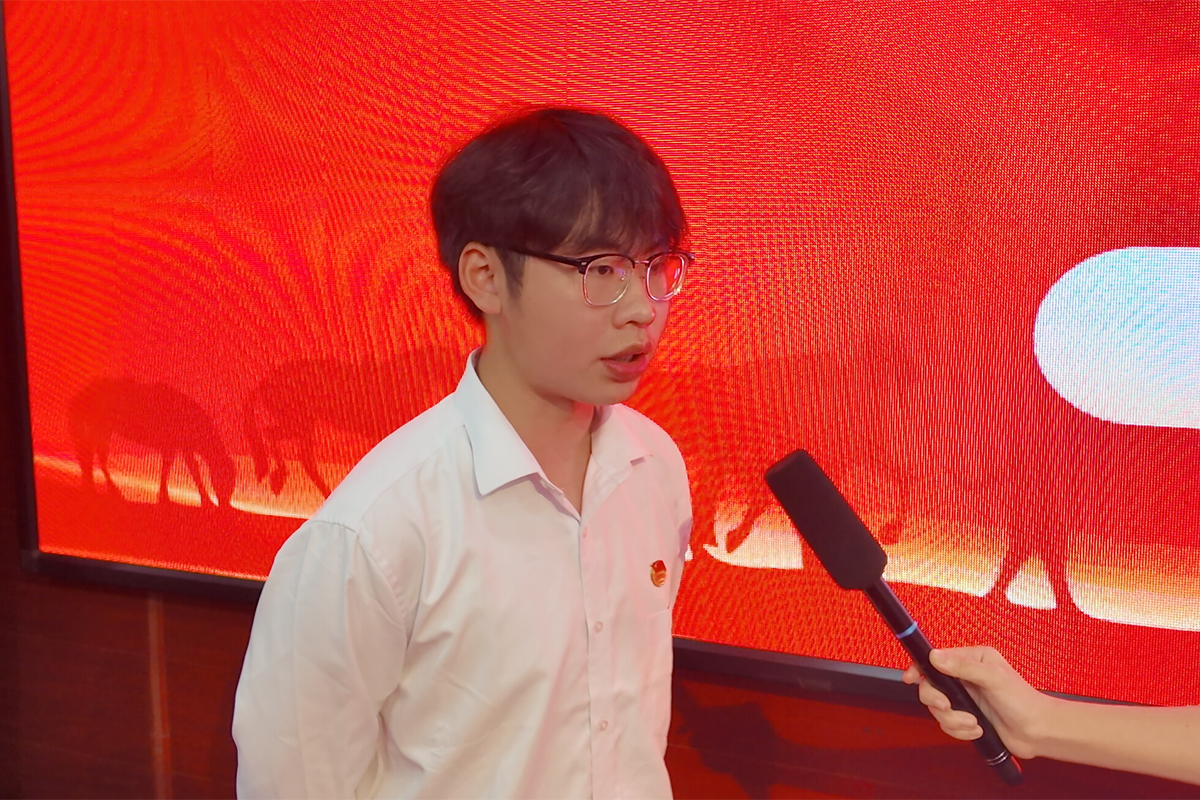 9号参赛同学曾丞接受采访时表示:“未来,我将把长征精神融入日常。在学习中,发扬‘啃硬骨头’的劲头,不畏难题;在生活中,乐于助人、艰苦朴素;未来工作中,更要胸怀家国,勇于担当。用实际行动,做红色基因在新时代的活跃细胞。”