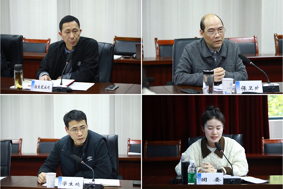 各职能部门依次汇报新学期开学准备情况。招生就业处汇报了寒假期间线上招聘持续开展,新学期将重点推进线下招聘、招生宣传及外出宣传策划。保卫处部署校园交通安全管理,明确开展校内自行车停放专项整治。团委重点介绍返家乡志愿服务活动,并就分类整理评估材料、组织课外活动作出安排。