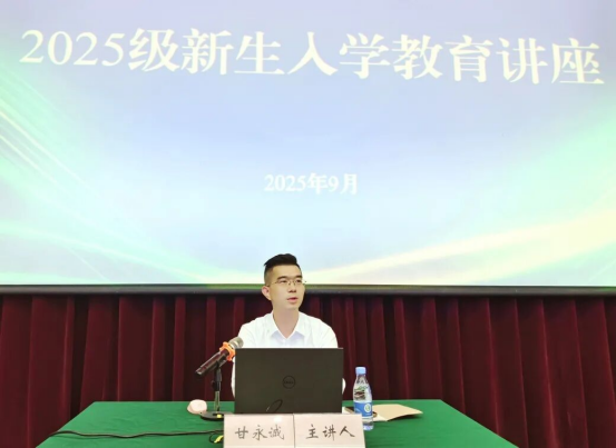 本次讲座由学校党委副书记、副校长甘永诚教授担任主讲。他以“奋楫扬帆 逐梦前行——立志做民族复兴的新时代青年”为主题,围绕“感知大学新生活”“学习中收获成长”“生活中学会相处”“适应中找准目标”“自律中遵守规矩”“不负青春好时光”六大板块,结合袁隆平、张桂梅等时代楷模的感人故事,引导新生思考大学意义、树立远大理想、规划人生方向。