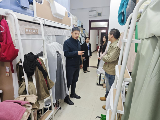 为切实保障学生住宿安全,营造整洁文明的寝室环境,11月13日上午10时,学校党委学生工作部部长邓健、学生成长事务中心主任尚书庆、南山社区党支部书记万奔、社区管理员张川及学校物业相关工作人员,深入南山社区学生寝室进行安全月检查。