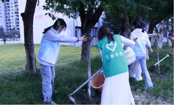 为了践行绿色发展理念,增强师生生态环保意识,营造爱绿、植绿、护绿的校园文化氛围,南山社区联合烹饪与食品学院于3月12日在校园内开展植树节劳动实践活动。活动中,同学们沉浸式体验挖坑、扶苗、培土、浇水等环节,在协作劳动中感受生命成长的喜悦与责任。