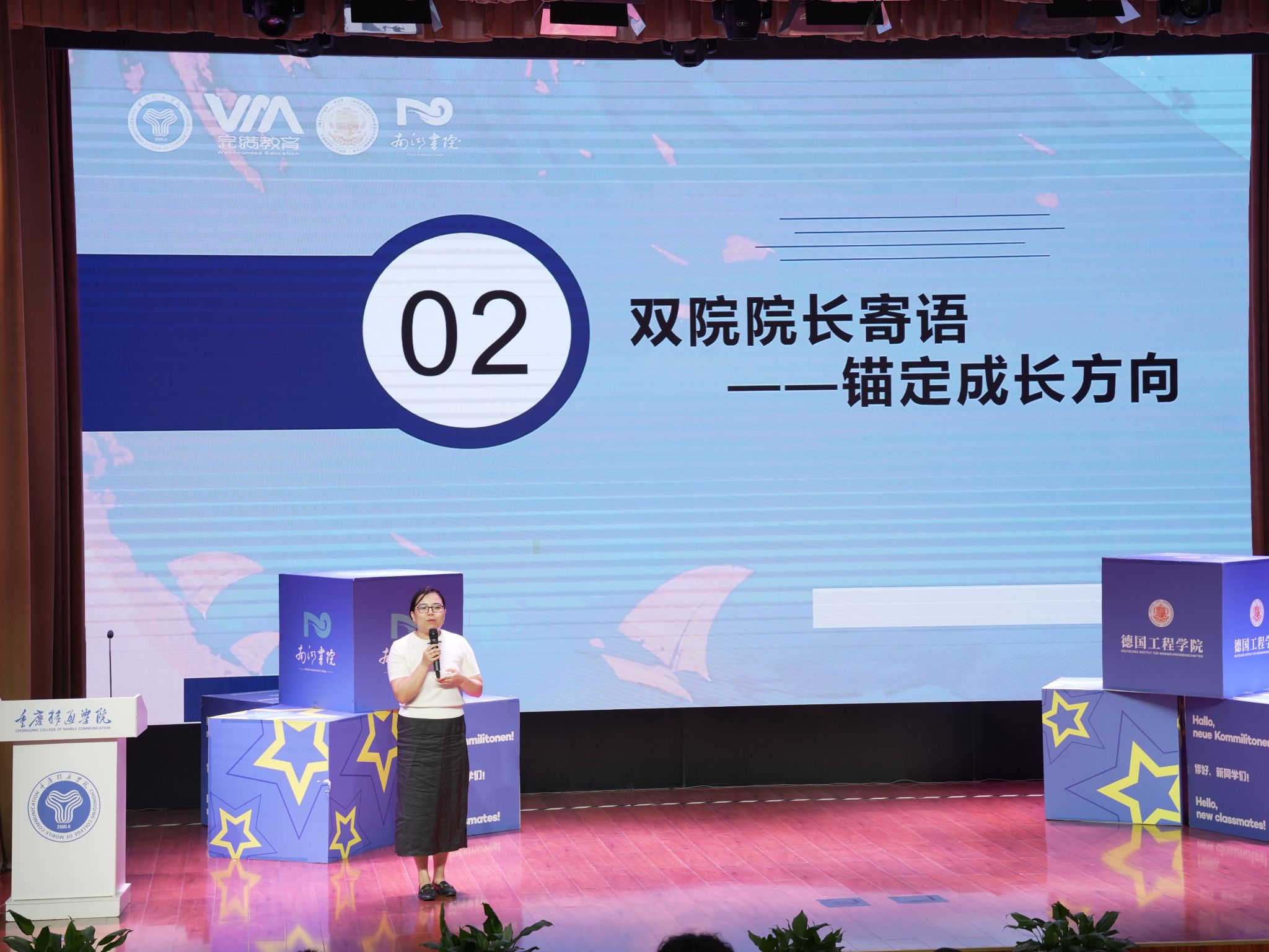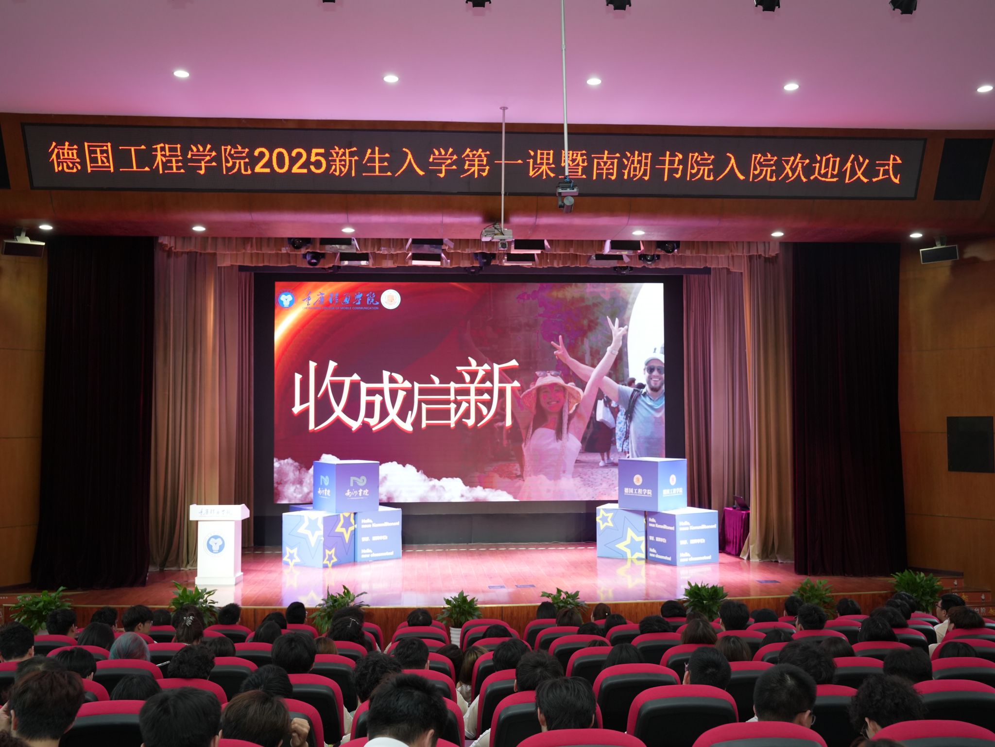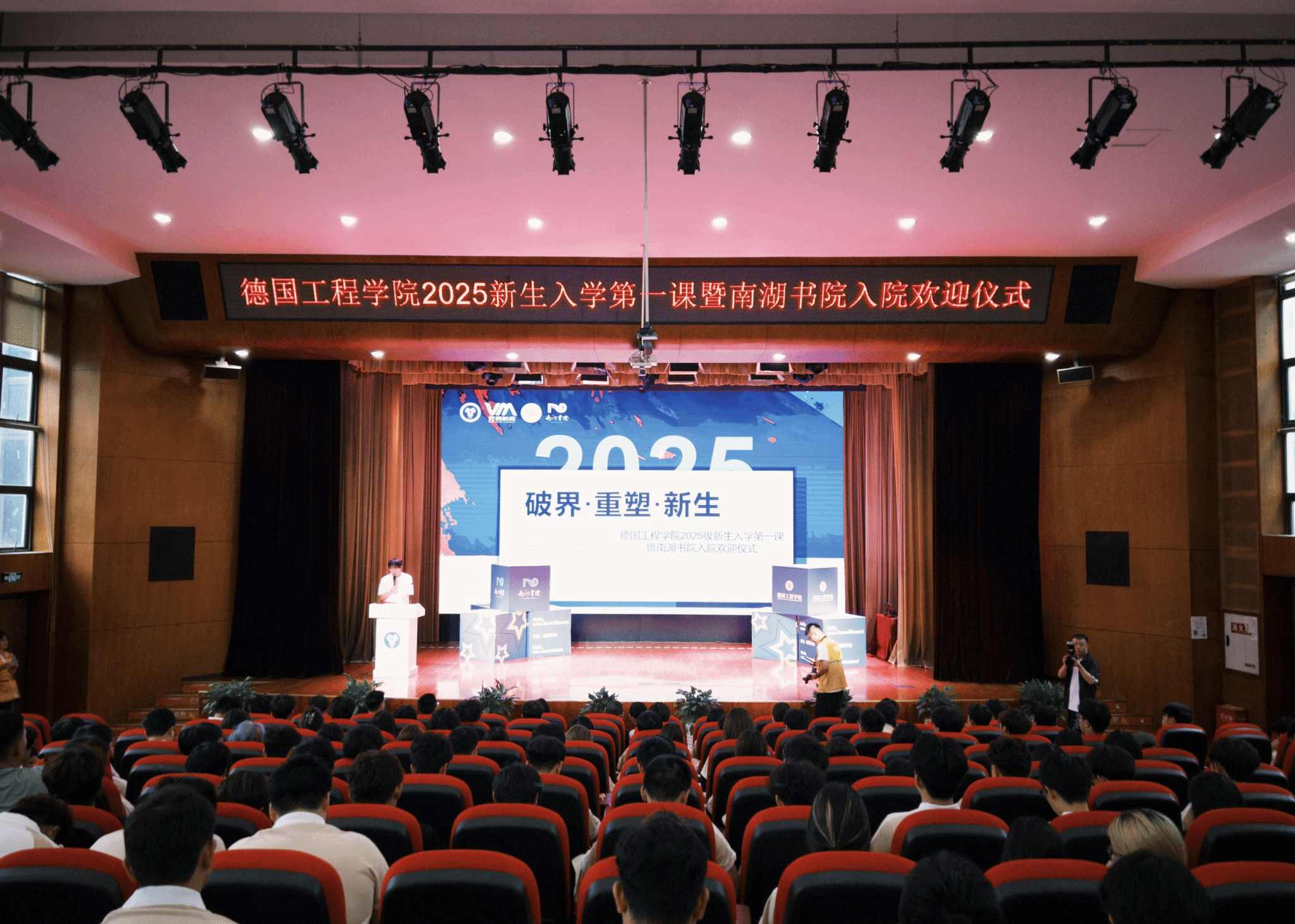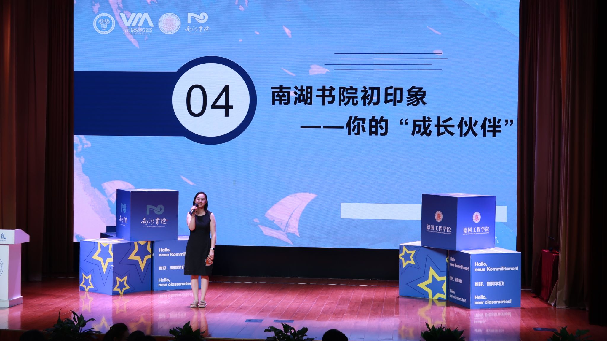 随后,德国工程学院侯宇晶院长与南湖书院名誉院长莫光华教授分别致辞,从“专业发展与双院协同”和“综合素养与生活成长”两方面为新生锚定成长方向。