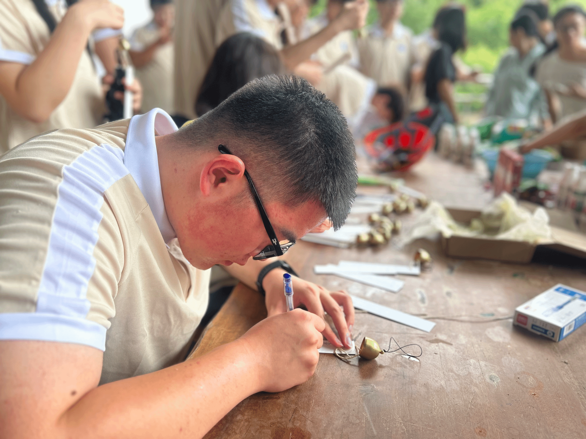 打破了“我不行”的心理负面标签,以具象行动告别旧我。随后,在未来的展望风铃区,新生们手持马克笔,将美好的期许郑重书写。