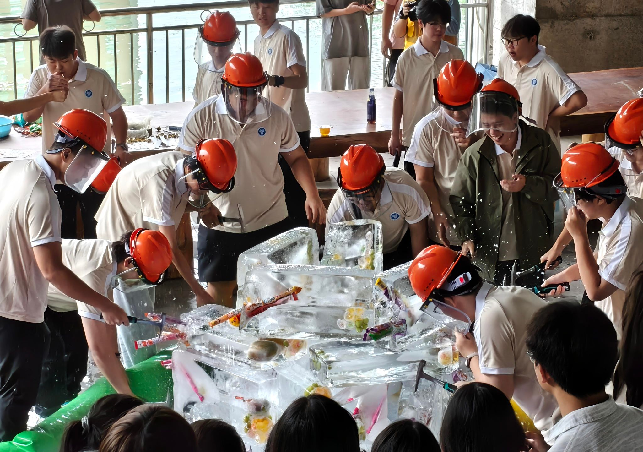 最后,“破冰行动”环节将气氛推向高潮,破冰行动区的巨大冰墙成为焦点——当新生亲手凿下冰块的瞬间,击碎了“分数低 = 差生”的刻板偏见,