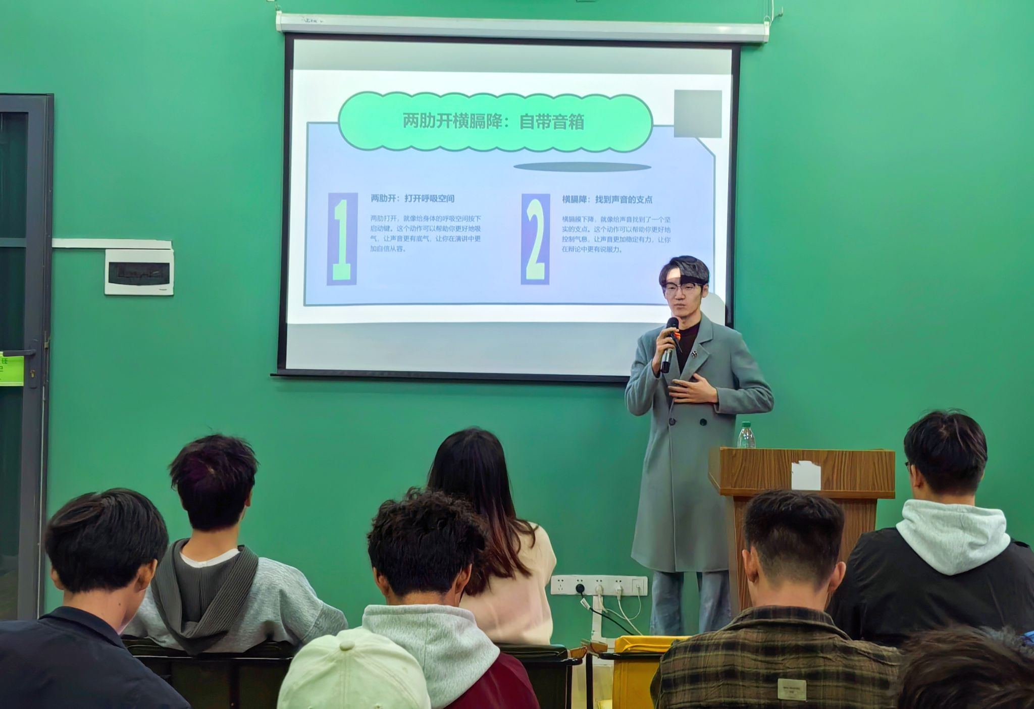 同时主持社社长李吉庭同学结合自身专业特长与丰富的普通话练习经验,聚焦学生实际需求,围绕普通话发音技巧、气息控制、绕口令训练等实用内容,与现场同学进行了互动、交流,让同学们沉浸式感知语言之魅、声音之美。