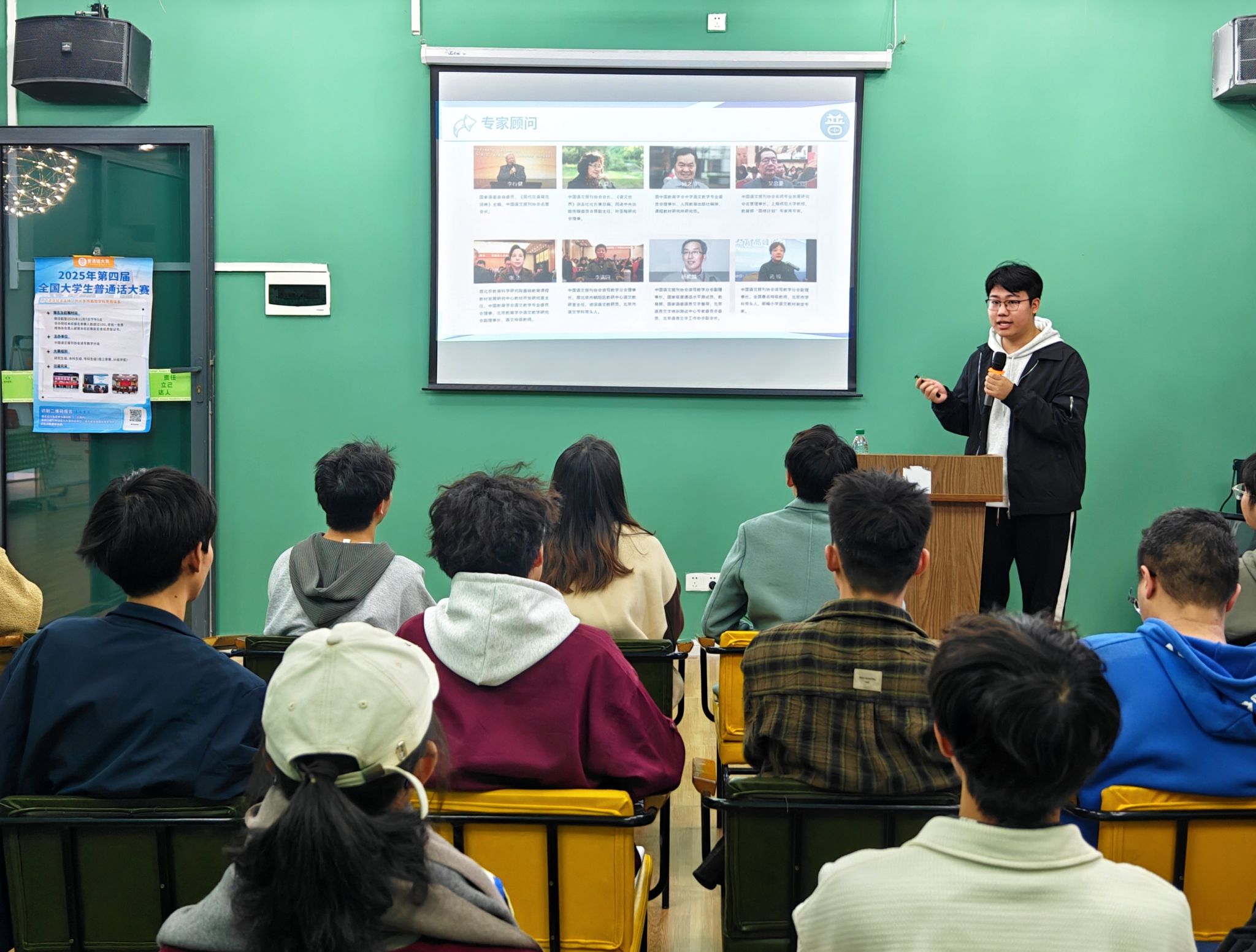 语言是民族的精神纽带,声音是文化的鲜活载体。为切实提高移通学子的语言文字规范意识,充分发挥语言文字的浸润育人与实践助力作用,花果书院主席团成员许贺凯同学围绕2025全国大学生普通话大赛展开详细讲解。他从赛事背景、比赛题型到大赛日程逐一拆解,清晰传递赛事价值,并鼓励同学们以赛促学、以赛提能,用标准普通话讲好青春故事,让语言力量为成长赋能。