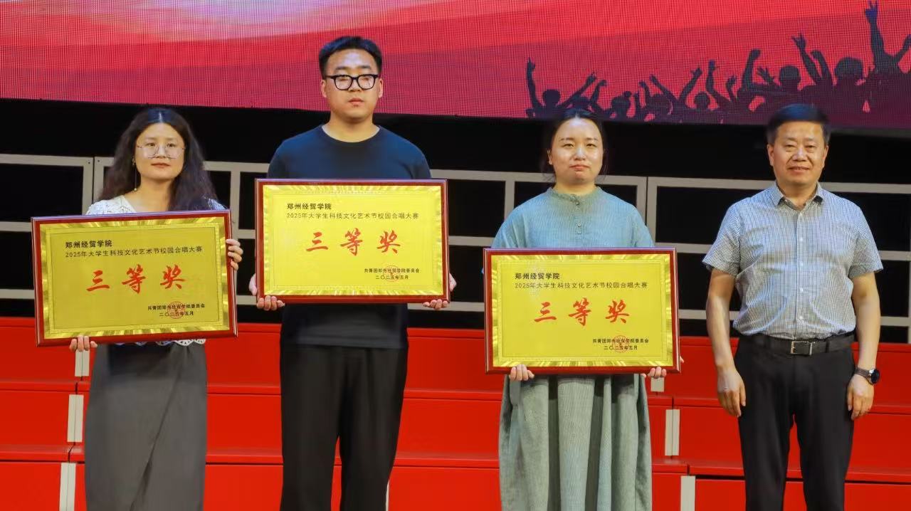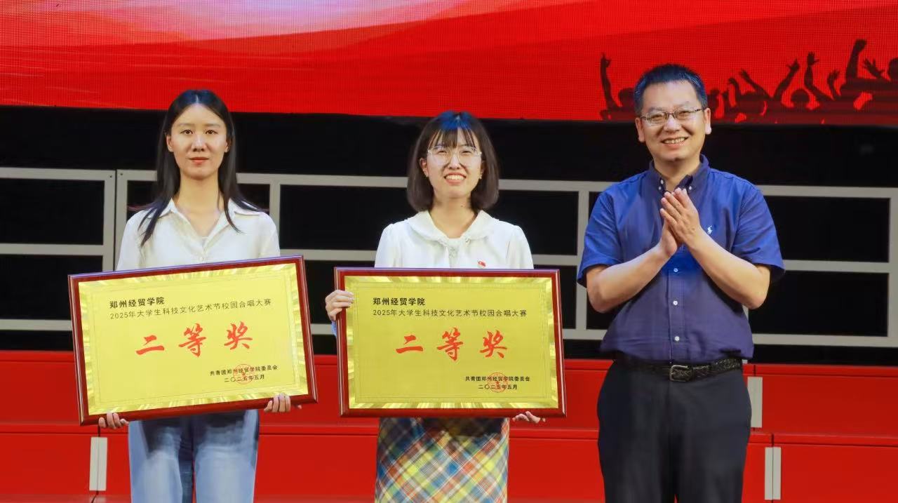 经过激烈的角逐,外国语学院海韵合唱团获得一等奖,金融与经济学院金歌合唱团、会计学院财华乐章合唱团获得二等奖,艺术设计学院聆风合唱团、工程管理学院筑梦合唱团、法律与传媒学院律韵谐声合唱团获得三等奖,大数据与人工智能学院云之光合唱团、智慧制造学院智慧之星合唱团、商学院商都之韵合唱团获得风采奖。金歌合唱团数字242班李雯雅、财华乐章合唱团会计233班梁锦涵、筑梦合唱团建筑222班卢利君获得优秀指挥奖。与会领导为获奖单位和个人颁奖。
