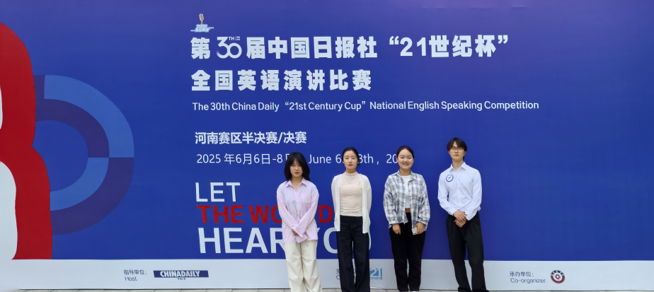 近日,第30 届中国日报社“21 世纪杯”全国英语演讲比赛河南省决赛在郑州商学院圆满落下帷幕收官。我校英语专业和商务英语专业4名凭借扎实的语言功底与出色的临场发挥,一举斩获二等奖 2 项、三等奖 2 项,以优异成绩展现新时代青年风采,为学校再添荣誉。