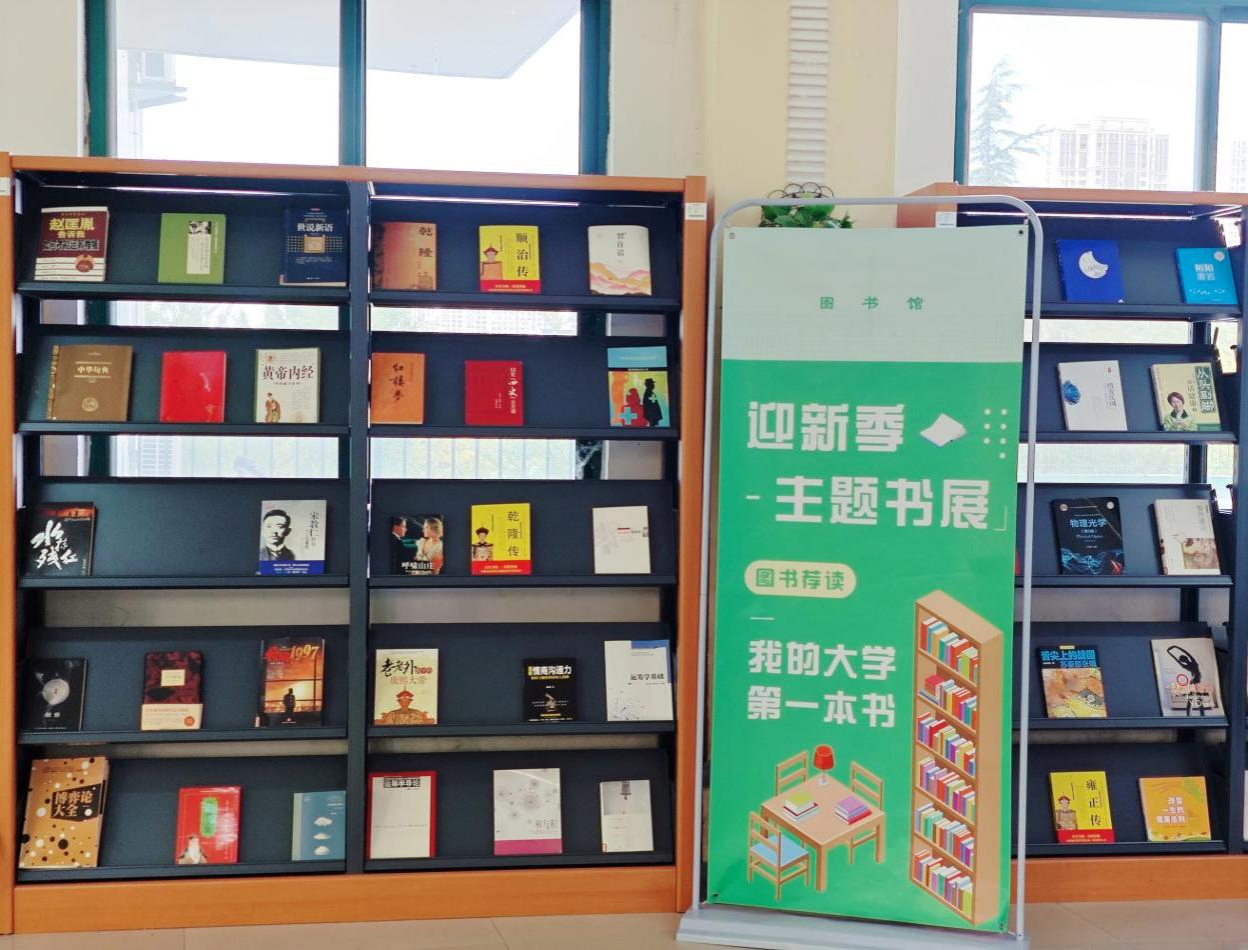 与此同时,图书馆二楼的“开启大学第一课”专题微书展已悄然布展,从学业规划指南到青春成长读物,从人文经典到生活百科,一本本精心挑选的书籍整齐陈列,为校园增添了浓厚的书香氛围。