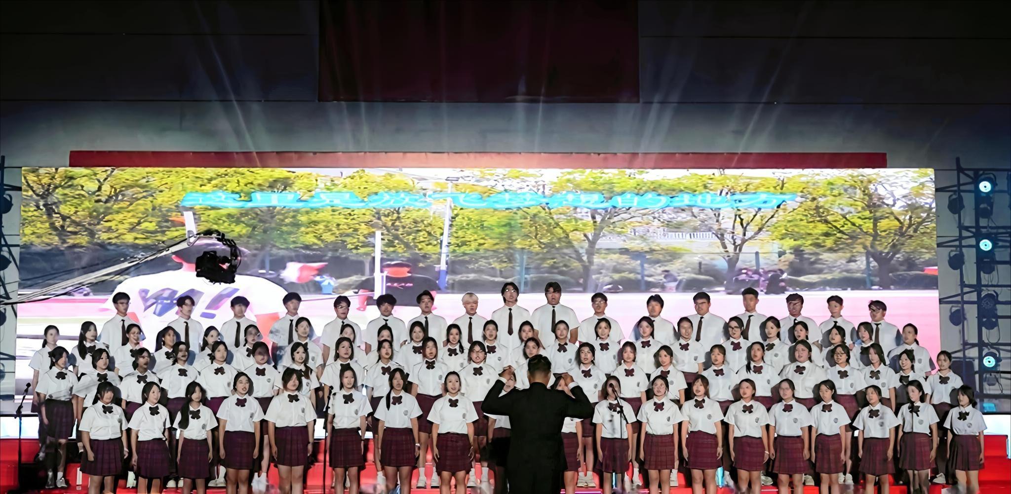 走秀《裙绽花漾》,模特们自信步伐与时尚穿搭展现青春魅力与风采。朗诵《青春献礼华诞,共启逐梦新篇》,表达青年一代对祖国华诞的深情祝福以及为梦想拼搏的决心。街舞《舞力全开》充满力量与节奏感,展现青春无限可能。最后,星光合唱团带来大合唱《放飞梦想》《共青团员之歌》,嘹亮歌声传递对梦想的追求和对祖国的热爱,我校通识教育学院副院长李俊生指挥全场师生共同唱响《歌唱祖国》,将晚会气氛推向最高潮,爱国之情在每个人心中激荡。