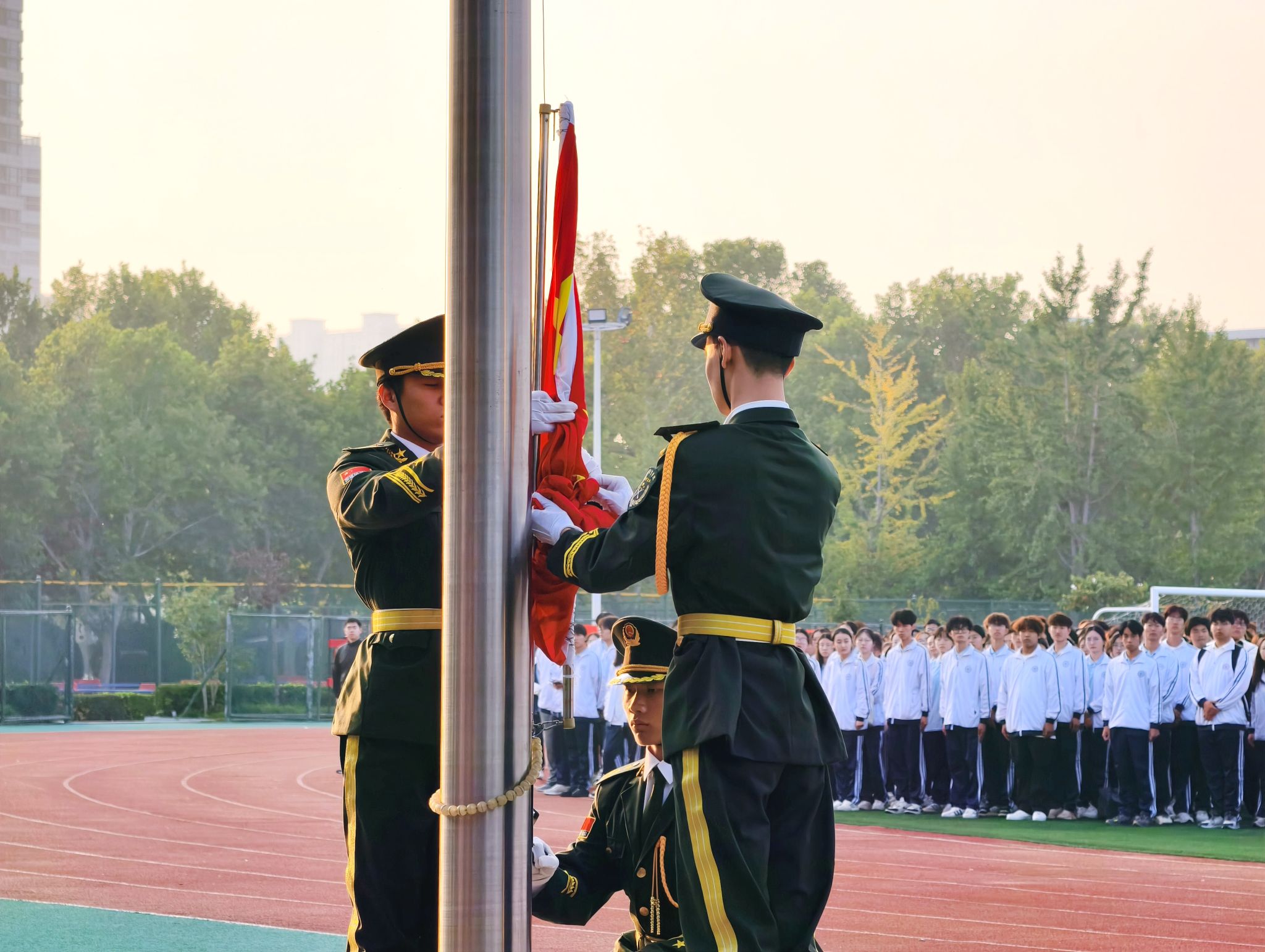 仪式在晨光中拉开帷幕。国旗护卫队队员身着挺拔制服,迈着整齐划一的正步护送国旗入场,全体师生面向国旗行注目礼,高唱国歌。