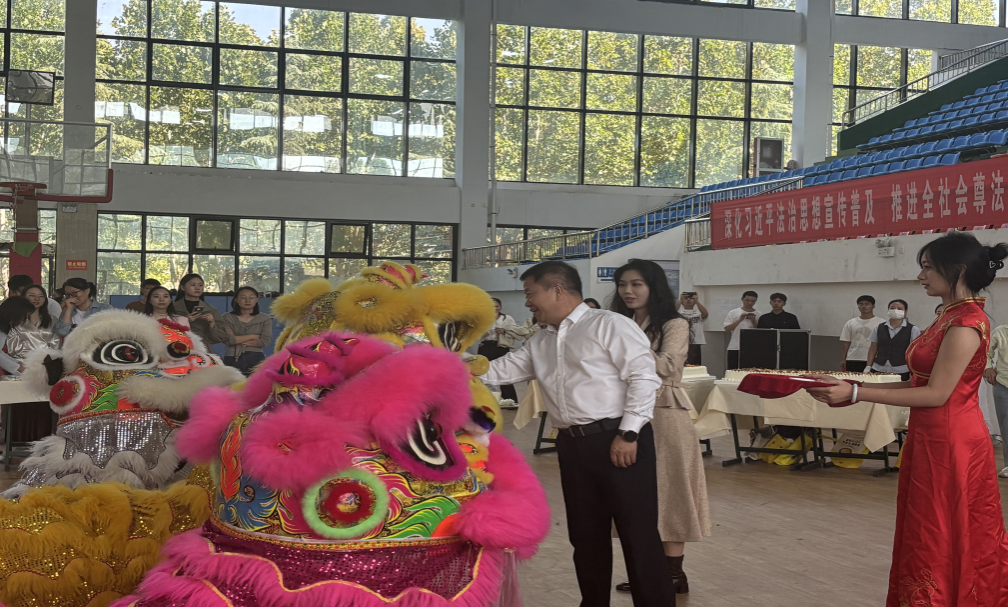 活动由郑州经贸龙狮运动协会带来的《龙腾盛世》舞狮表演震撼开场。铿锵有力的锣鼓声中,祥狮跃动翻腾,时而摆尾,时而点睛,将节日的喜庆氛围推向高潮。杨德明上台为雄狮点睛,“一点左眼,师者风采,桃李满天下;二点右眼,评建顺利,事业节节高;三点额头,双节同庆,师生共奋进;四点狮嘴,经贸未来,辉煌再出发”,四句点睛词既蕴含了对大家的美好祝愿,也寄托了全体教职工对学校发展的殷切期望,赢得现场阵阵掌声。