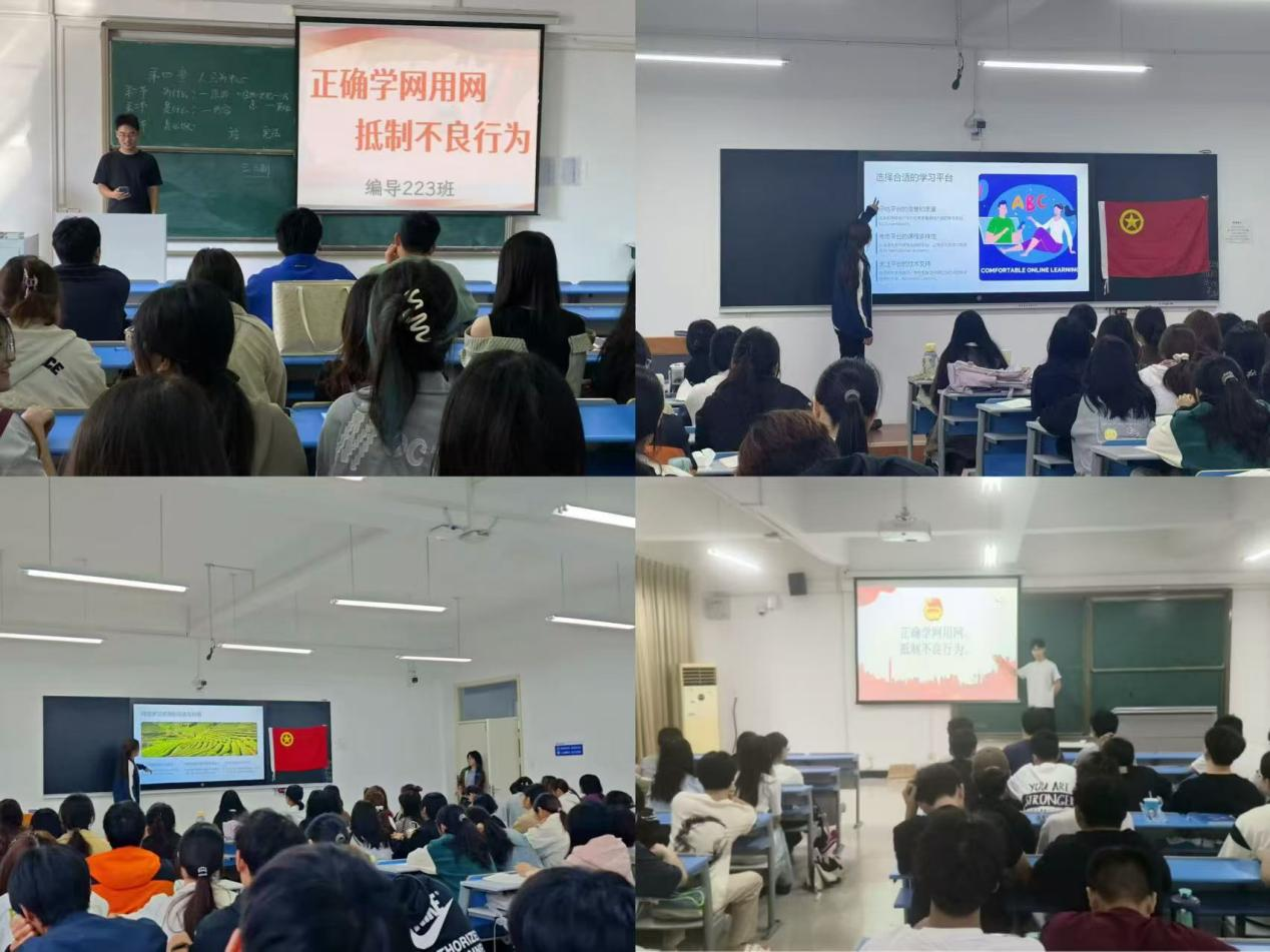 围绕“正确学网用网,抵制不良行为”主题,各支部通过主题班会、网络文明倡议等形式,教育引导学生自觉维护网络安全、规范网络言行,树立文明用网理念。