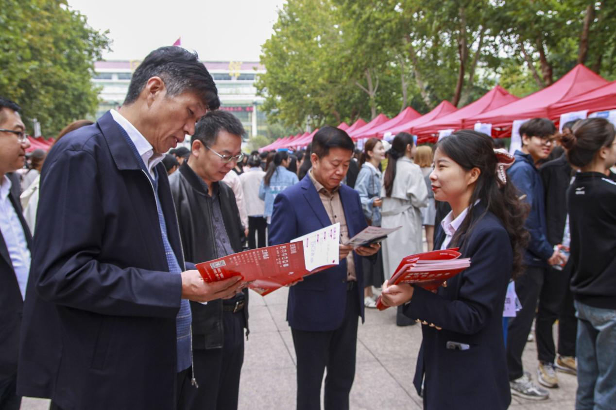 为深入贯彻落实党中央、国务院和省委、省政府对高校毕业生就业工作的决策部署,积极响应省教育厅关于启动2026届河南省高校毕业生金秋校园招聘月活动的号召,10月16日,我校在喷泉广场举办“豫荐未来 职等你来”——郑州经贸学院2026届毕业生秋季校园双选会。校领导陈丙义、张超、杨德明一行莅临双选会现场指导工作。