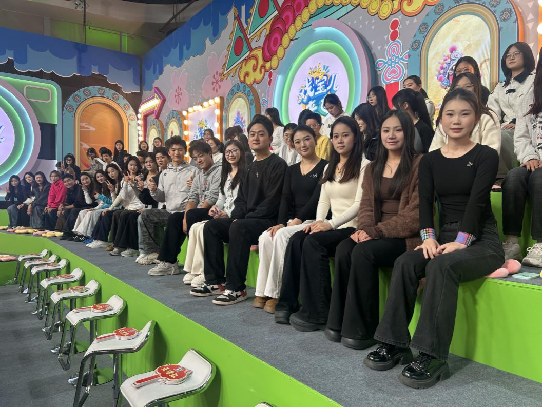 录制当天,来自艺术设计学院航空服务艺术与管理专业的20名形象气质俱佳的大学生受邀组成“青春品鉴团”,担任节目的大众评审,以青春视角参与节目互动,为少儿戏曲新秀加油助威,以活力姿态展现我校学子的青春风采和当代大学生群体对传统戏曲的关注与热爱。