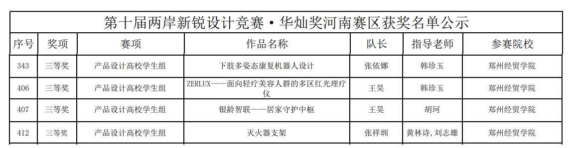 近日,第十届两岸新锐设计竞赛·华灿奖河南赛区评审结果正式公示,我校智慧制造学院工业设计专业学生凭借扎实的专业功底、创新的设计理念在众多参赛作品中脱颖而出,获得三等奖4项。