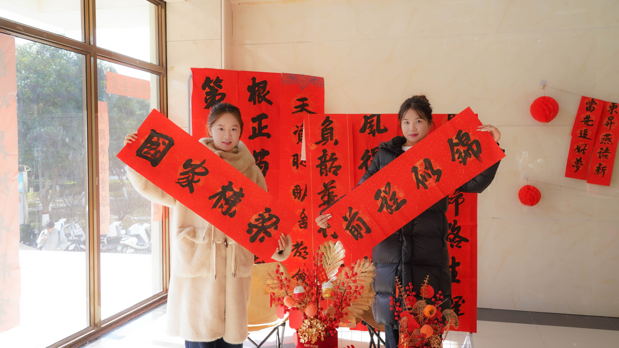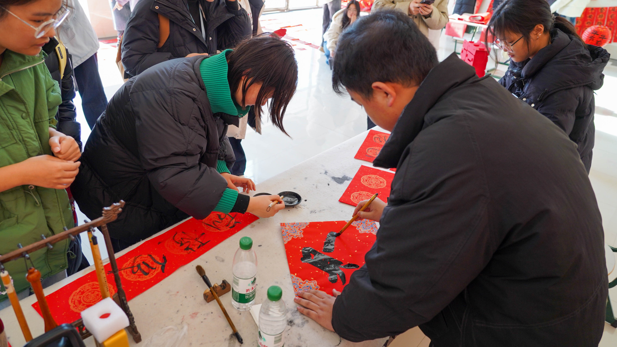 为传承中华优秀传统文化,营造喜庆祥和的元旦新年氛围,让师生在笔墨书香中感受传统节日的魅力,12月29日,校团委在学生活动中心大厅举办“庆元旦、送春联、迎新年、送祝福”活动,党委副书记、副校长张超出席活动现场,与广大师生齐聚一堂,以笔传情,以联寄福,共同迎接新年的到来。