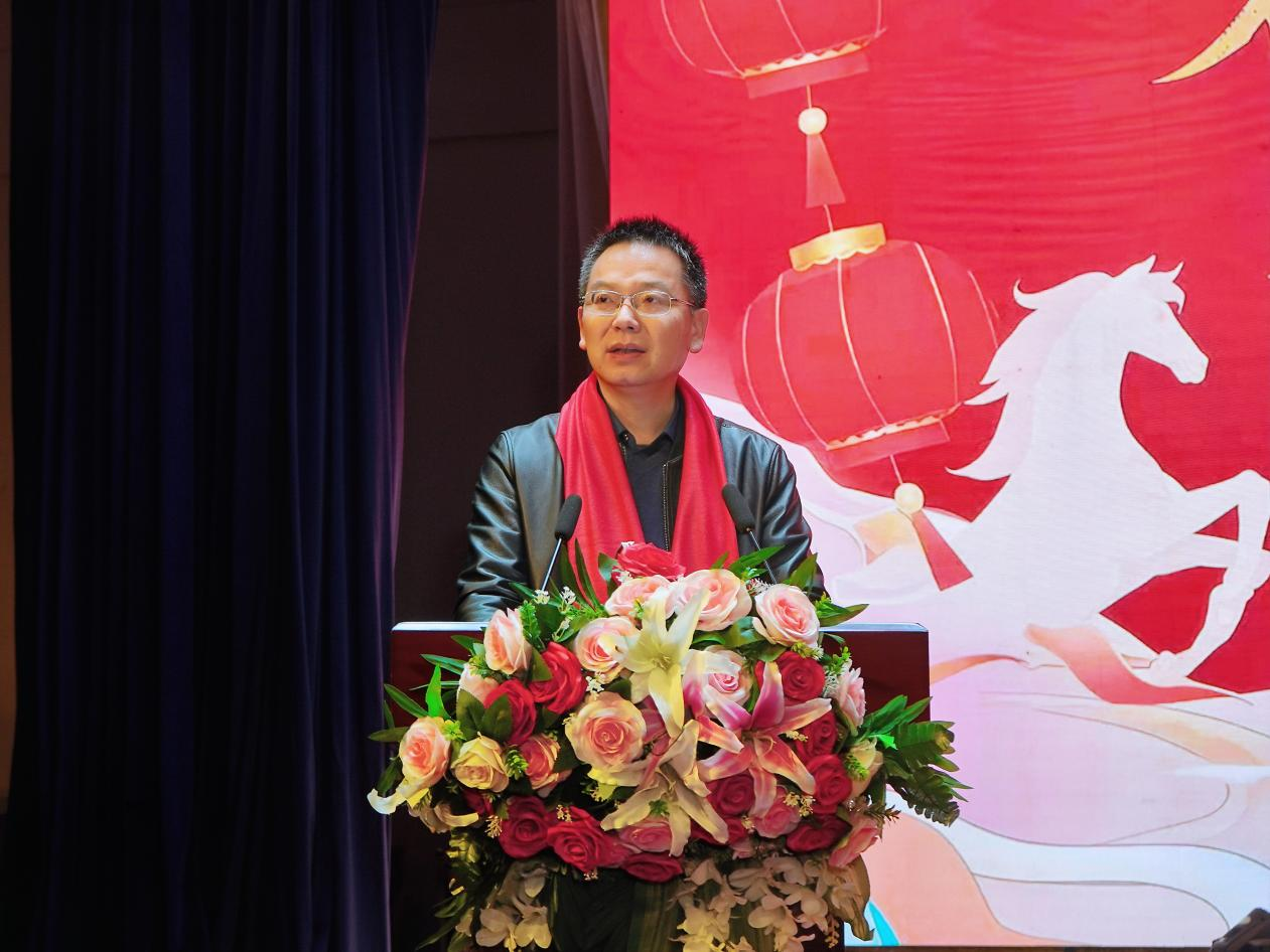 晚会正式开始前,党委副书记、副校长张超致新年贺词。他代表学校党委和行政,向全体教职工与同学们致以诚挚的新年祝福和节日问候。张超回顾了2025年全校师生围绕本科教学工作合格评估目标,深化教学改革、锤炼本领素养,同时加快新校区建设、优化育人环境,各项工作取得显著成效,为评估奠定了坚实基础。展望2026年农历丙午马年,他强调,新的一年是迎接本科教学工作合格评估的关键攻坚之年,学校将坚守立德树人根本任务,以评促建、提质增效,为师生搭建更广阔的发展平台。他寄语老师们争做新时代“大先生”,深耕教学科研;同学们争做新时代好青年,勤学笃行、增光添彩,共同书写学校高质量发展的新篇章。殷切嘱托赢得了现场师生阵阵热烈的掌声。