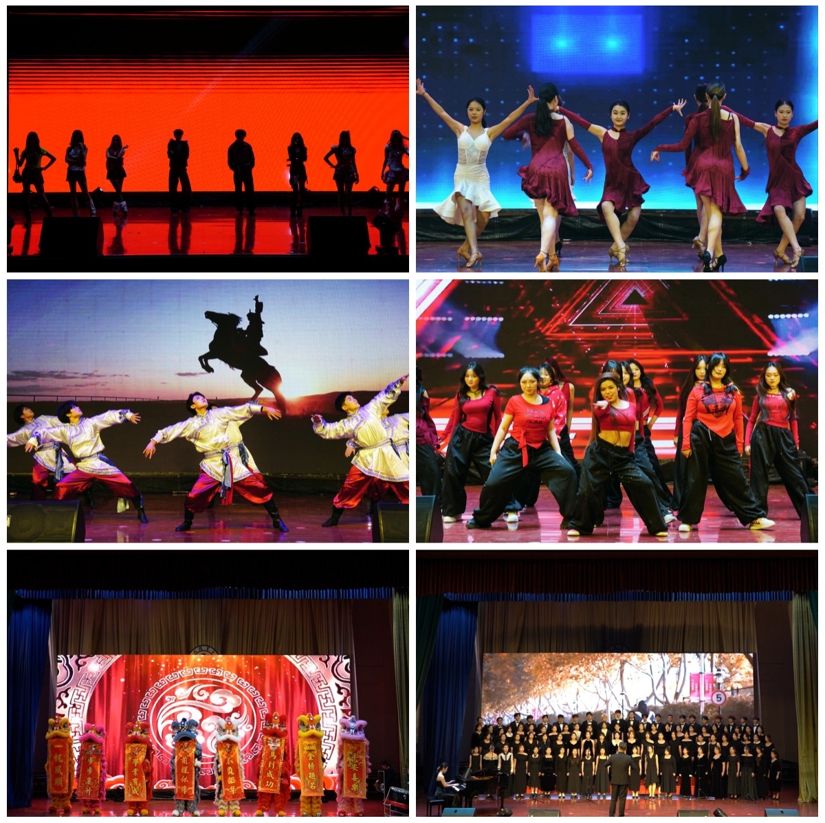 文艺汇演在活力四射的啦啦操《Yes or yes》中拉开序幕,动感的节拍、整齐的舞姿瞬间点燃全场气氛。马悦颖老师的独唱《领航新时代》,歌声悠扬、情感真挚,唱出了新时代青年紧跟时代步伐、奔赴崭新未来的坚定信念;拉丁舞《午夜恰恰恰》、民舞《淡妆浓抹总相宜》《江格尔英雄赞》、街舞《overture》,以灵动的舞步、热烈的节奏,诠释了青春的活力与激情,展现了青春的热血与锋芒;小品《技能五子棋》将传统智力游戏与校园技能创意结合,妙趣横生的演绎让现场笑声不断;走秀《千禧引擎・暮色礼序》为现场观众带来了一场视觉盛宴;《瑞狮迎元旦・壮志启华章》的表演灵动喜庆,瑞狮舞动送祥瑞,奏响了新年的豪迈与期许;《直到世界尽头》《冲动》《歌曲串烧》等众多耳熟能详的歌曲带动全场师生跟随旋律齐声合唱,将晚会气氛推向高潮。最后,星光合唱团的老师与同学们带来大合唱《世界赠予我的》和《放飞梦想》,温暖的旋律与真挚的情感交织,为这场元旦汇演画上了圆满的句号,也表达了经贸师生对2026年的美好憧憬与无畏奔赴。