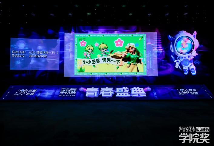 近日,在中国大学生广告艺术节学院奖营销策划类赛事中,由钟梦雨、何佳欢、高慧敏、潘婷、朱轲媖五位同学组成的参赛团队,凭借作品《小小感冒 快克一下!》脱颖而出,一举斩获营销策划类传播赛银级奖与实践赛银级奖两项大奖。与此同时,我校法律与传媒学院因在赛事中的突出组织成效与产教融合实践成果,被授予“产教融合实践基地”,指导教师张文慧登台发言,收获行业与高校同行的广泛认可。