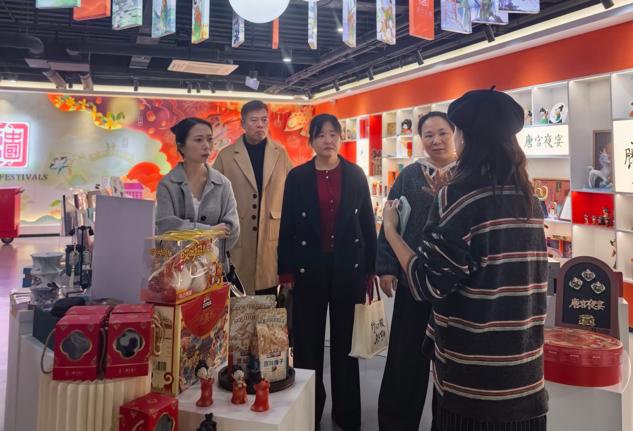 河南广播电视台办公室主任刘贝对学院一行的到来表示热烈欢迎,并陪同参观了河南大象融媒体技术有限公司办公环境、非遗传统文创作品展示区,观看了近年来“出圈”短视频作品的后期制作过程,深入了解节目制作流程、技术创新及媒体融合发展成果。