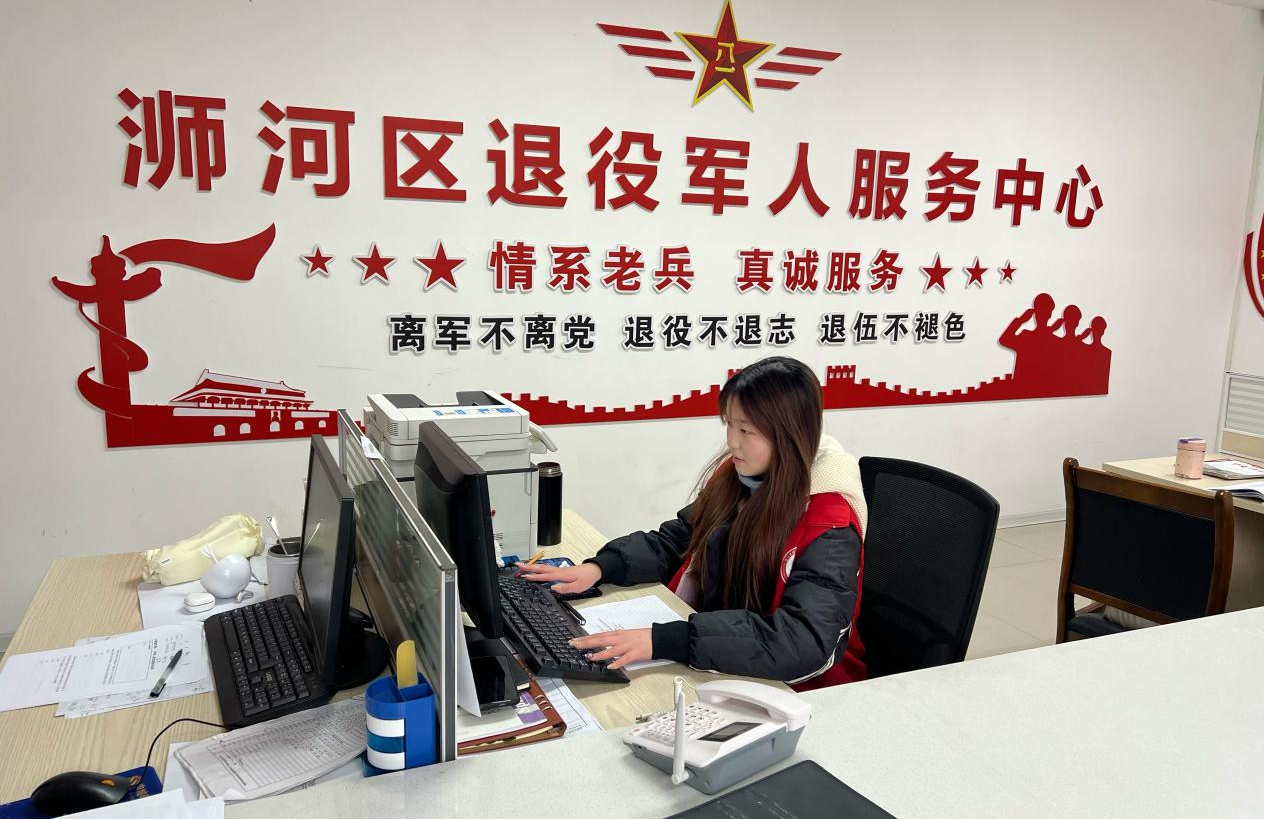 艺术设计学院廖周悦同学寒假期间参与河南省信阳市浉河区退役军人服务中心社会实践。实践期间,她协助工作人员高效整理退役军人档案,精准核对信息、规范分类归档;耐心为前来咨询的退役军人及家属解答优抚政策、就业帮扶、优待证办理等热点问题,用暖心服务传递对退役军人的尊崇与关爱。
