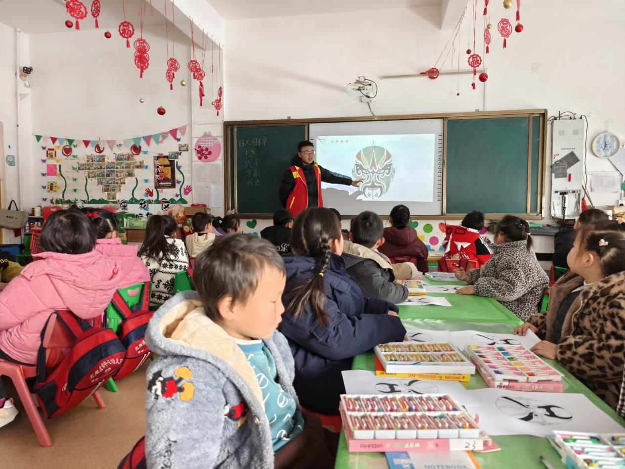 致知书院李孟航同学走进河南省漯河市舞阳县北舞渡镇中心幼儿园,开展“脸谱涂鸦迎新春”主题教学活动。他精心适配幼儿认知水平,梳理教学逻辑、筛选脸谱素材、简化色彩寓意,打造趣味互动教学流程;现场用通俗易懂的语言讲解脸谱色彩象征意义,耐心陪伴幼儿创作、回应需求;活动后分类整理32份幼儿作品,精心布置班级成果展示墙,让传统文化浸润童心。