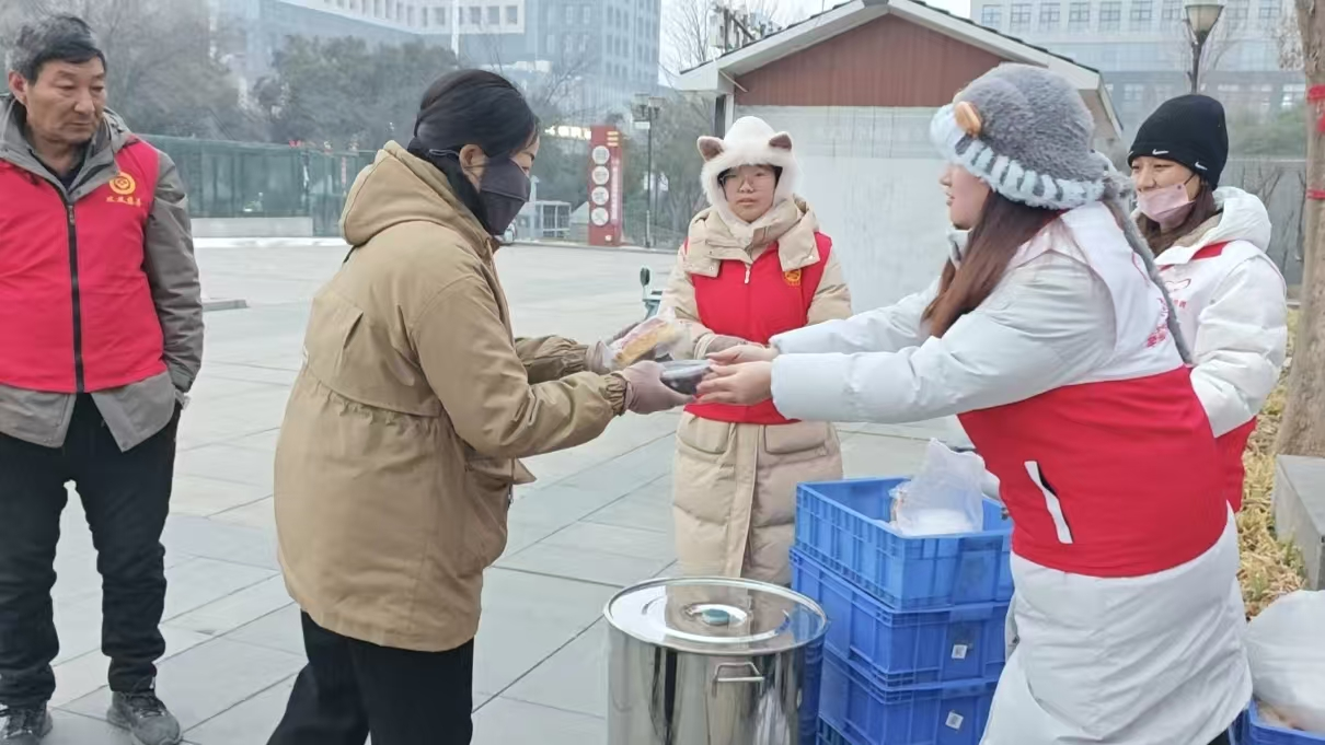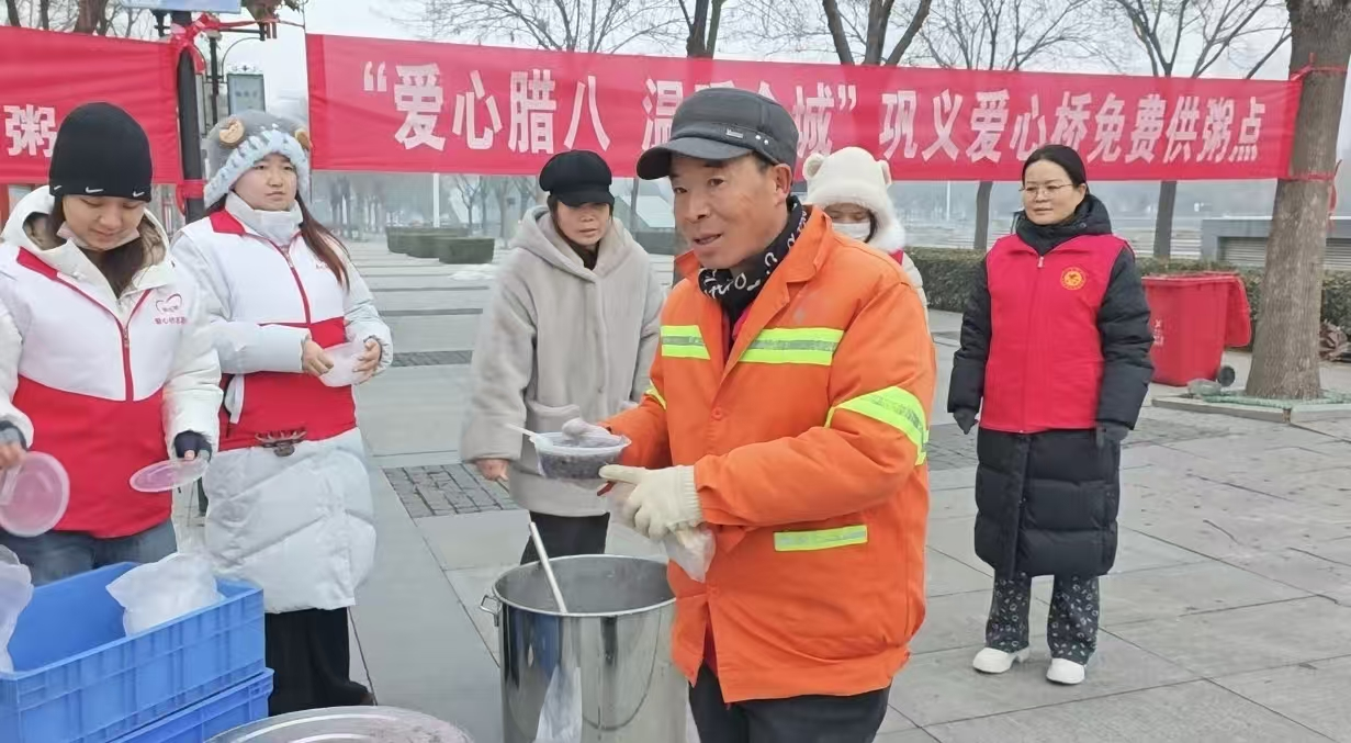 外国语学院华千瑶同学参与巩义爱心桥“爱心腊八 温暖全城”公益活动。协同做好腊八粥熬制分装、物资整理及现场秩序维护工作,高效配合保障活动有序推进。华千瑶主动为户外劳动者递上热粥,贴心叮嘱冬日保暖,耐心为市民讲解活动初衷,细致帮扶老年群体有序领取,用真诚服务传递温情。