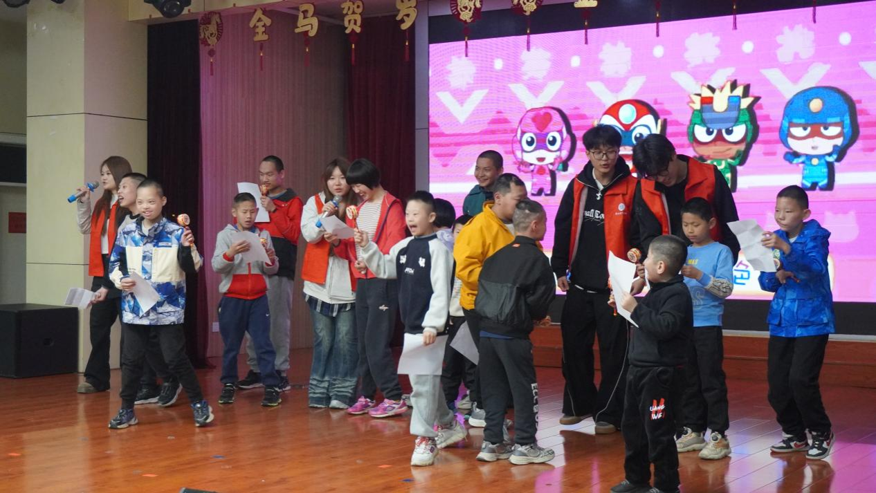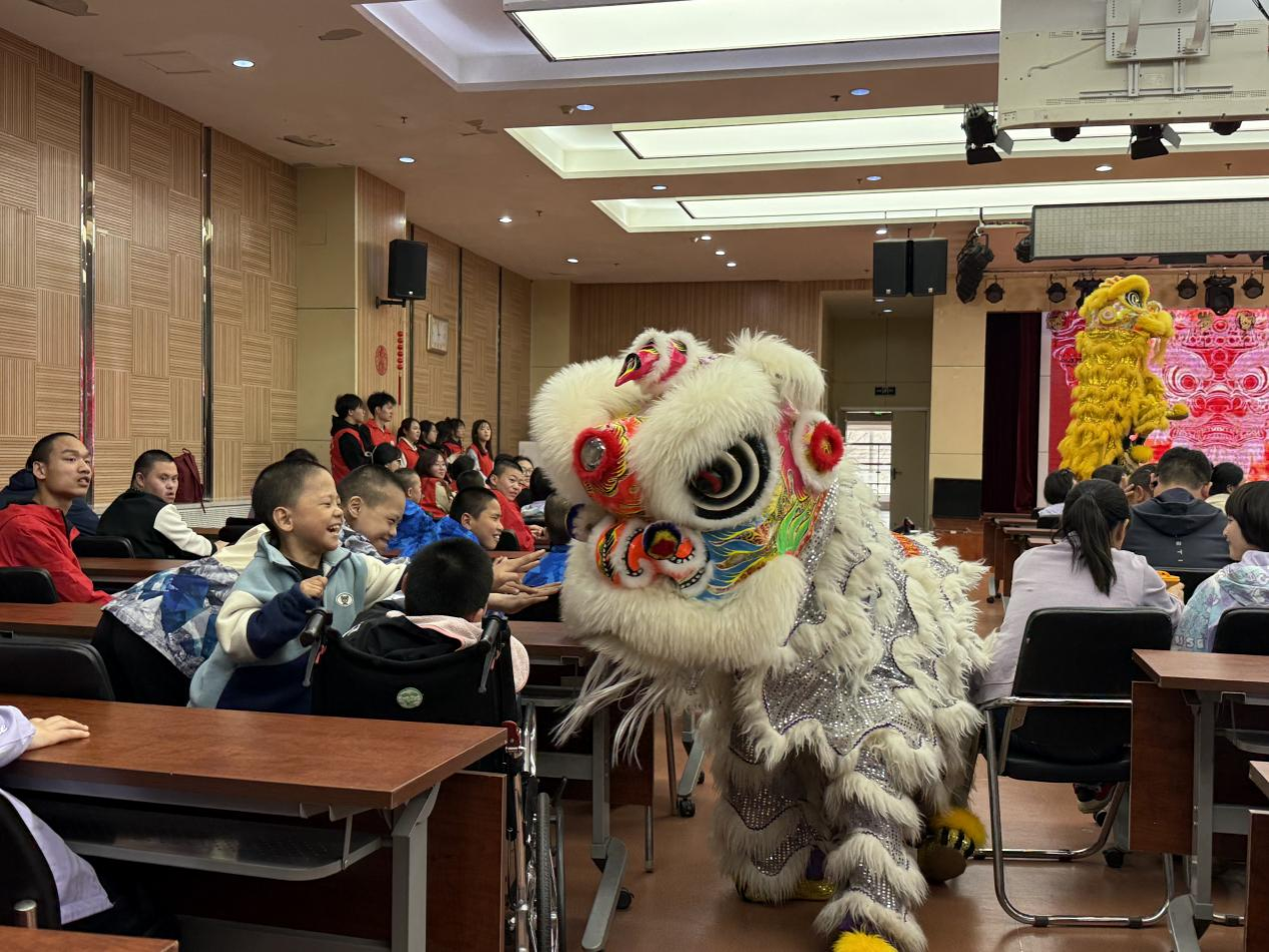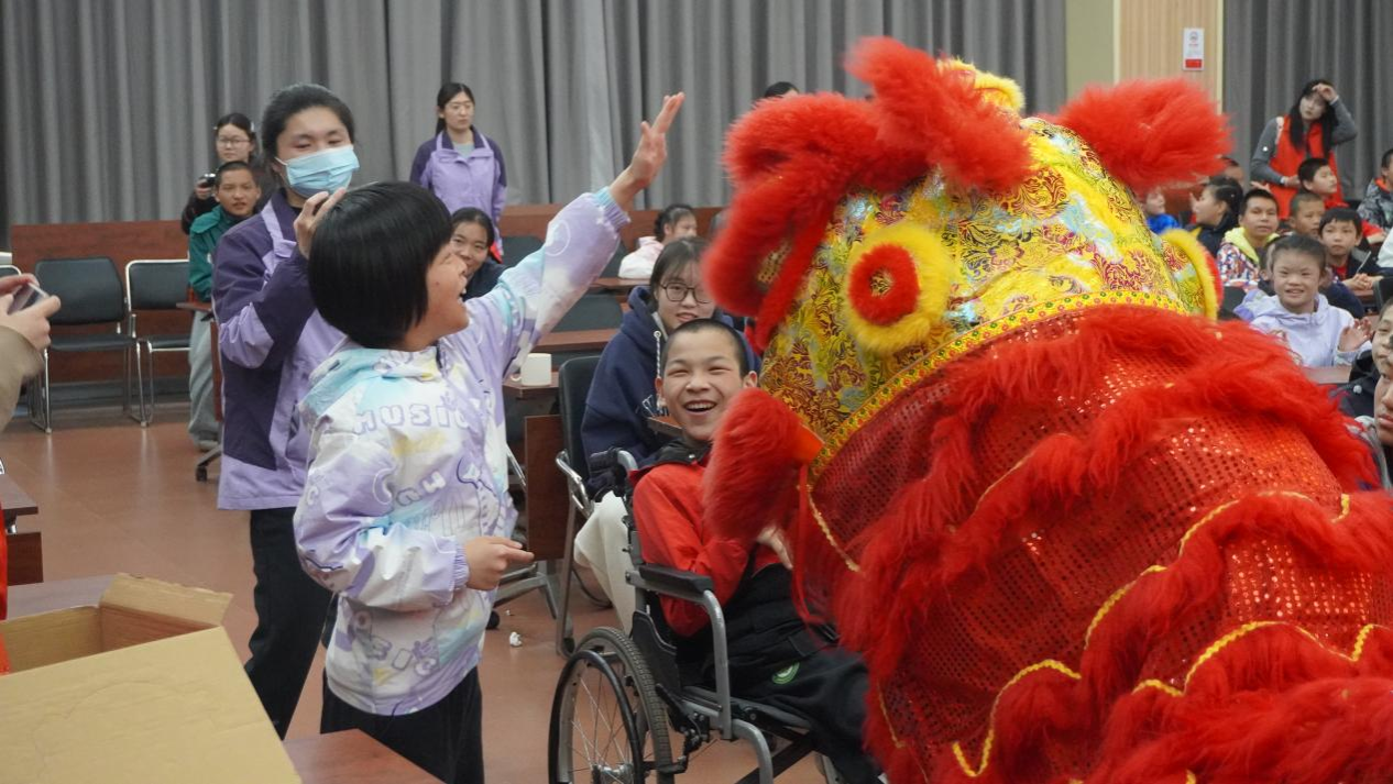 活动在福利院孩子们充满活力的架子鼓表演中正式拉开序幕。志愿者们依次登台,带来了舞狮表演《龙狮舞韵》、民舞《咏春》、小品《快乐摇铃站》,以及歌曲《赛尔号》《快乐女孩》《开心往前飞》等精彩节目,现场气氛热烈欢快,孩子们看得格外投入、笑声不断。演出结束后,志愿者们与孩子们亲密互动,一起画画、拼图、谈心交流,在温馨轻松的氛围中陪伴孩子们度过了一段欢乐时光。