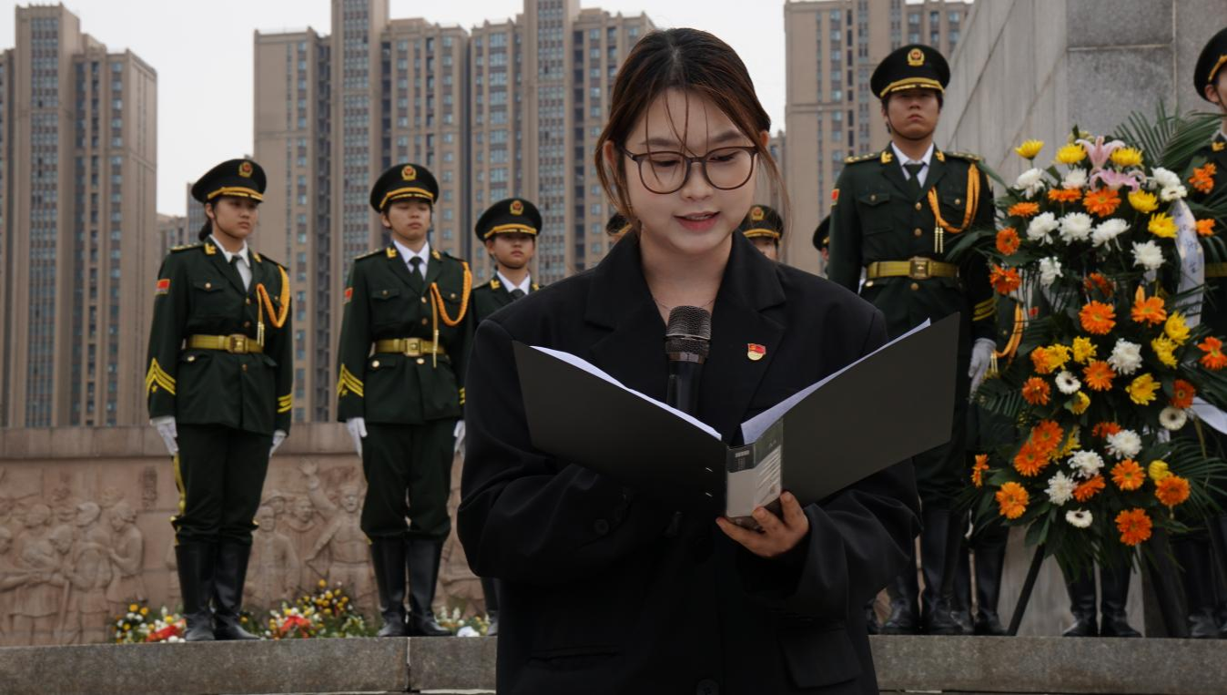 “青马班”学员代表、法律与传媒学院陈昱颖同学作代表发言。她表示,新时代青年要以革命先辈为榜样,从英烈精神中汲取奋进力量,将爱国之情转化为勤学笃行、担当作为的实际行动,在新时代新征程中书写青春答卷。