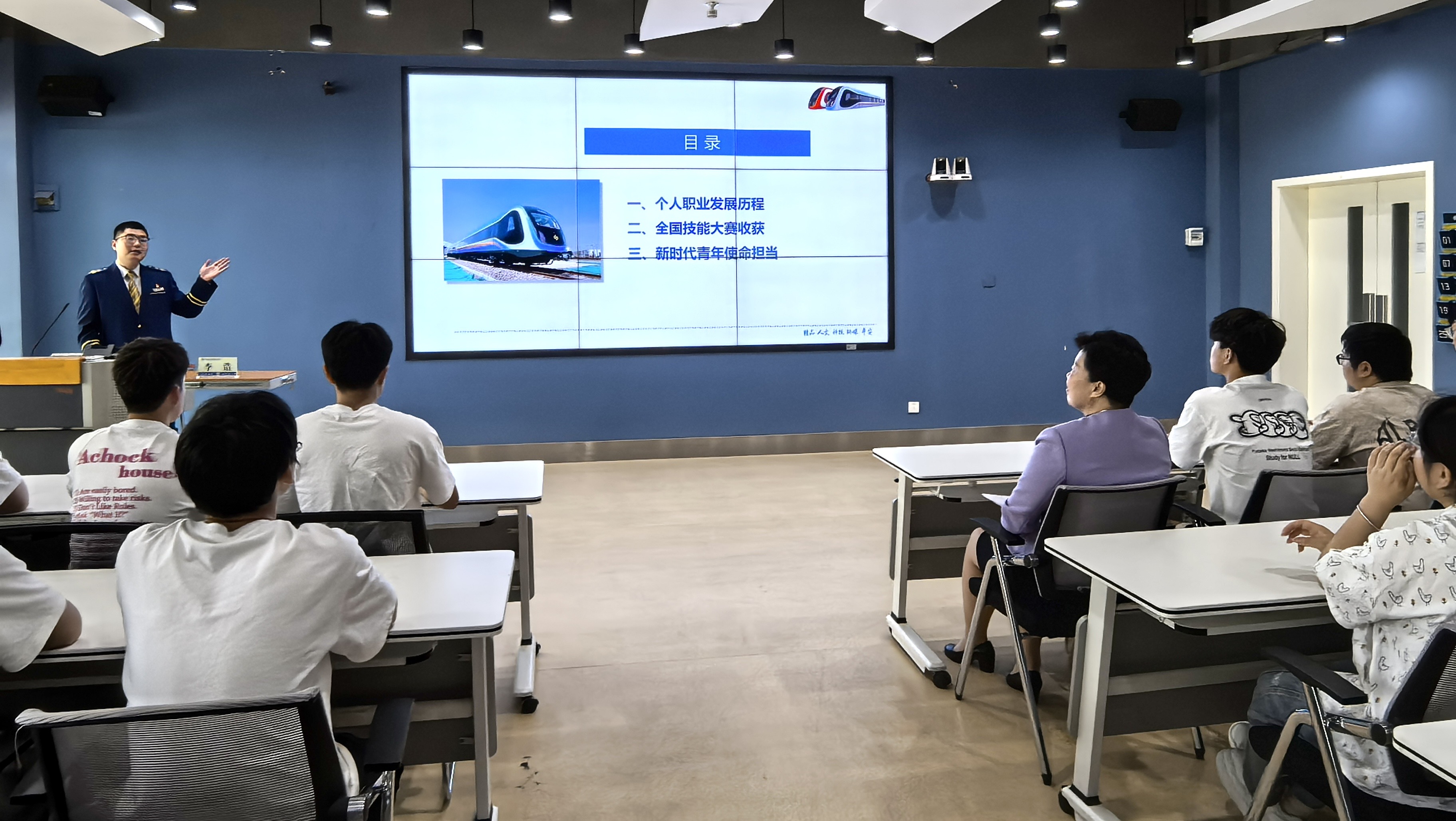 徐鹏为复兴书院学生举办了一场意义非凡的“劳模大讲堂” 专题讲座。讲座中,他以《以不忘初心保枢纽,牢记使命做先锋》为主题,围绕自身职业发展历程徐徐展开。从初入行业时的懵懂探索,到逐步在钢轨探伤应用技术领域崭露头角,桩桩件件皆饱含奋斗的汗水与智慧的沉淀。他还基于多年工作经验,贴心地为同学们在职业成长方面给出诸多宝贵建议。