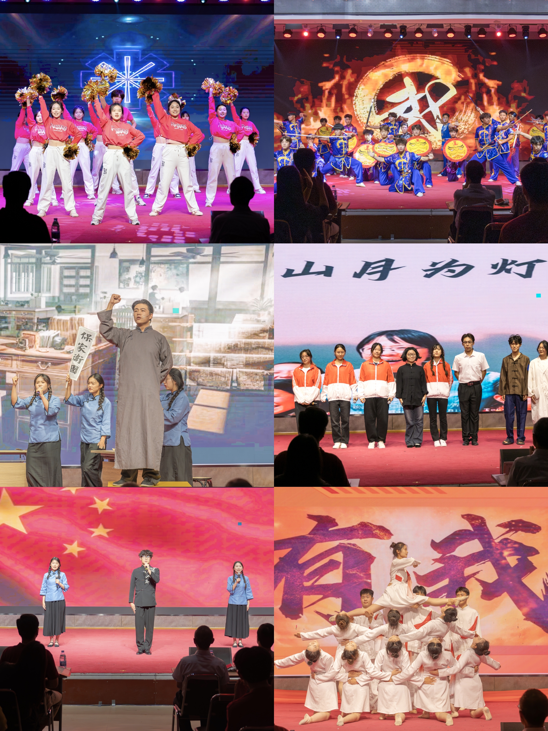 话剧《五四运动:黎明的呼唤》带领师生进行历史穿越,展现了中国人不屈的脊梁。朗诵《永不消逝的声音》以坚定的语言和铿锵的语调传递了革命信仰的价值。歌曲《世界赠予我的》在歌声中完成与世界最赤诚的和解。武术表演《盛世雄风》的拳术、棍术、刀术展现了少林武术源远流长、博大精深。情景剧、舞蹈、合唱、小品等回溯过往、紧扣热点,展现了青年学子的热血与担当。