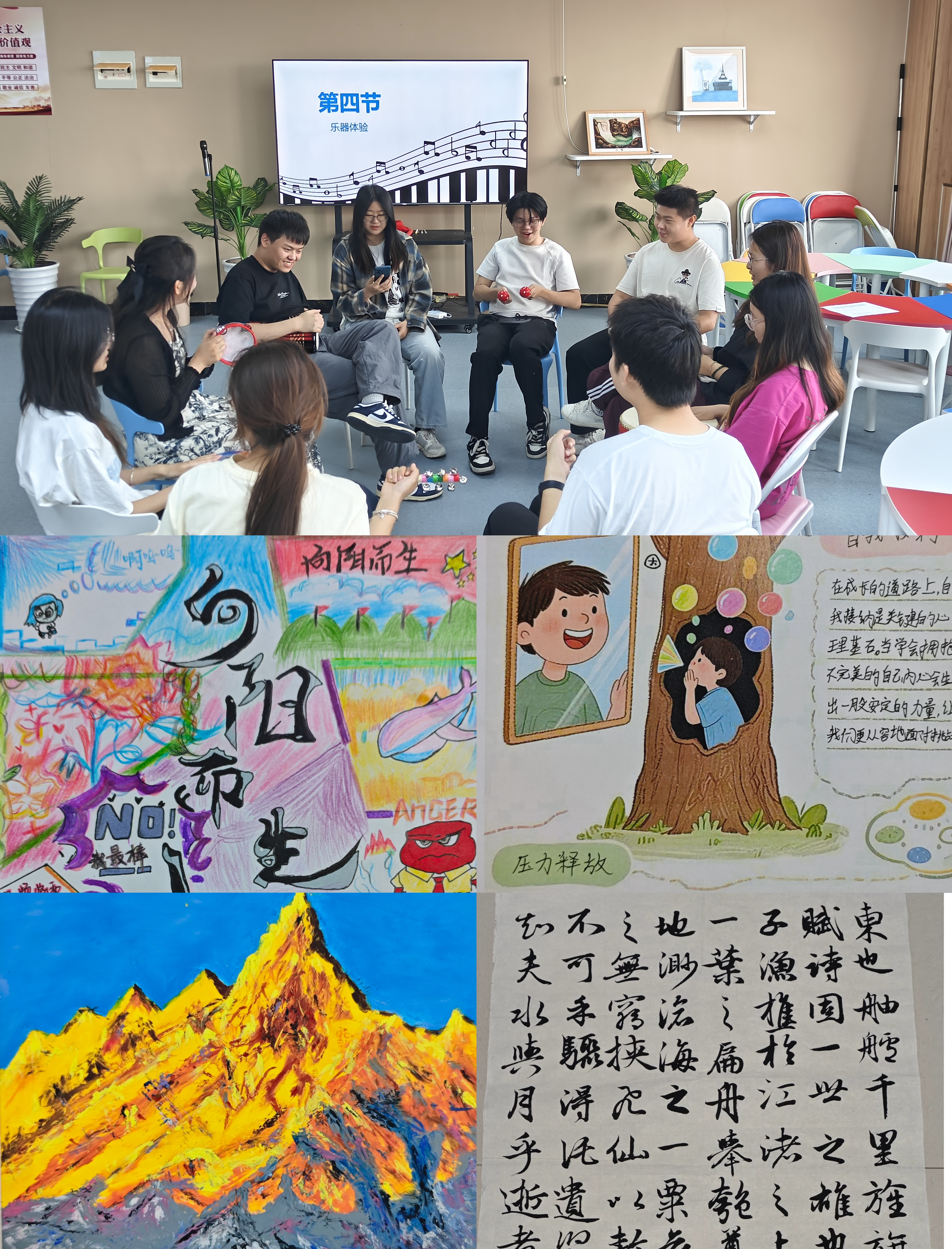 以美润心,陶冶心灵。举办“艺带心晴,艺路同行”作品征集活动、“心随乐动,音你而愈”音乐团体活动、“夏光溢彩,心向阳光”摄影比赛、心理健康教育实践课作品展等,引导学生用镜头和画笔捕捉校园美好瞬间,鼓励学生发现生活中的美好,引导学生认识美、欣赏美、创造美,塑造美好心灵,以美育人、以美化人。